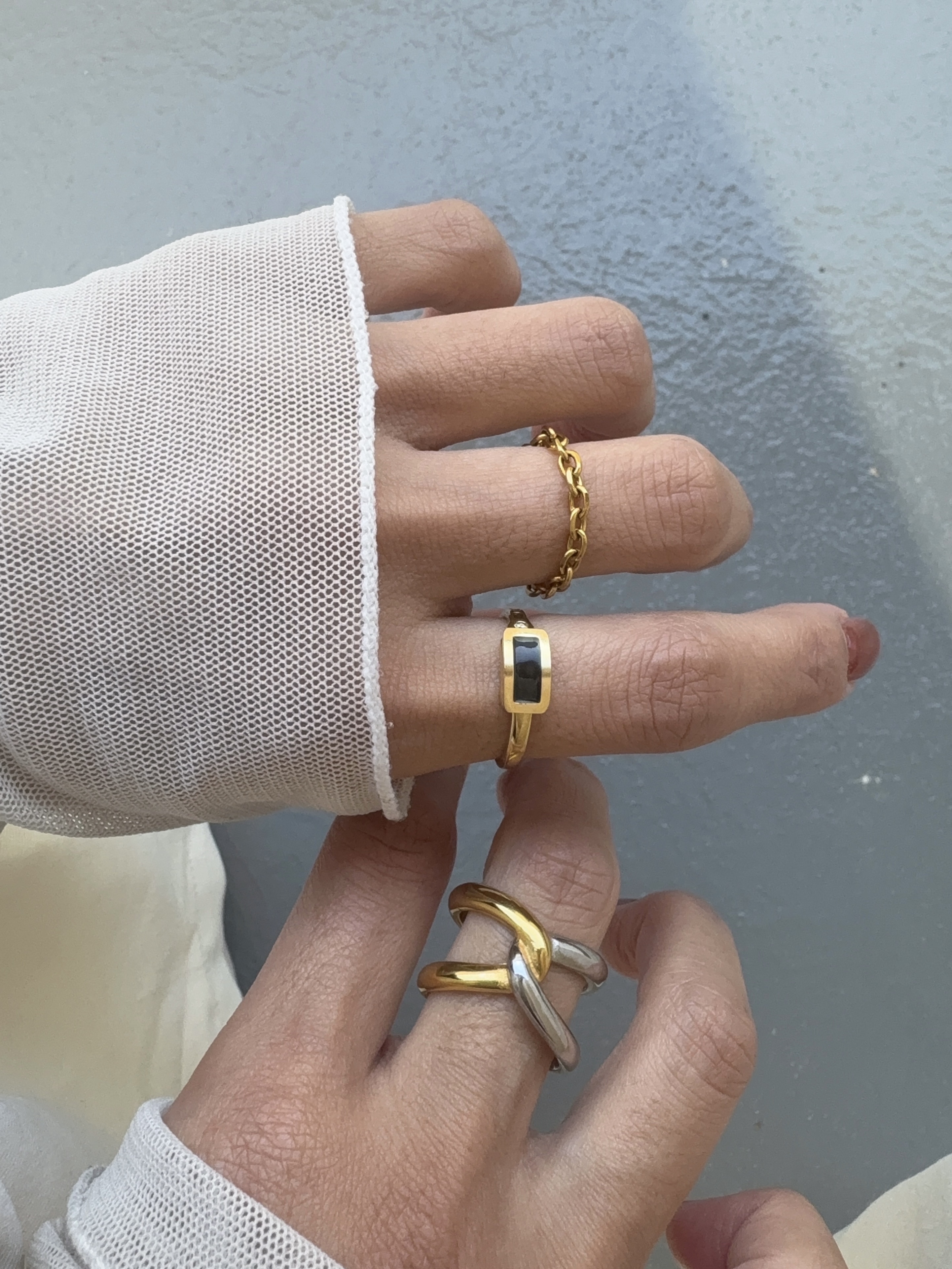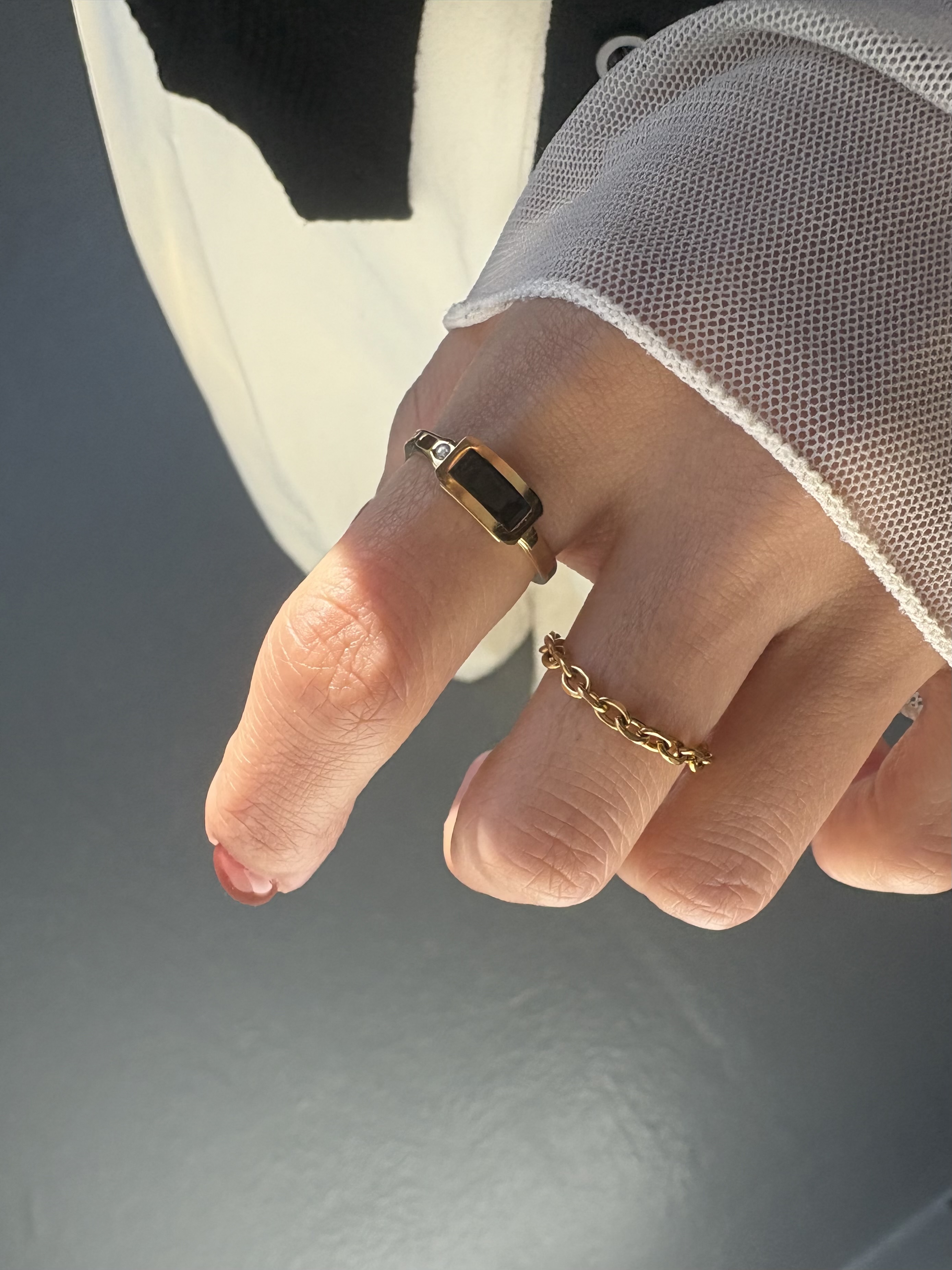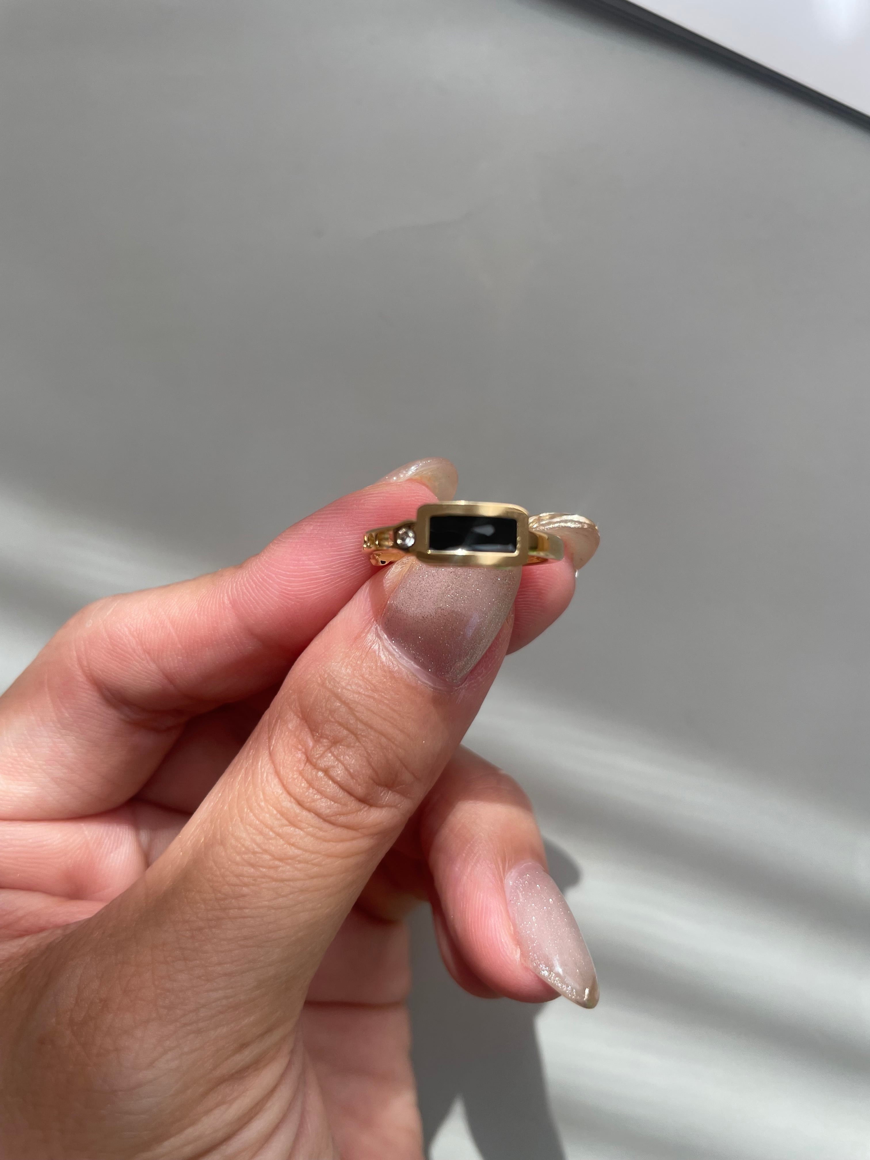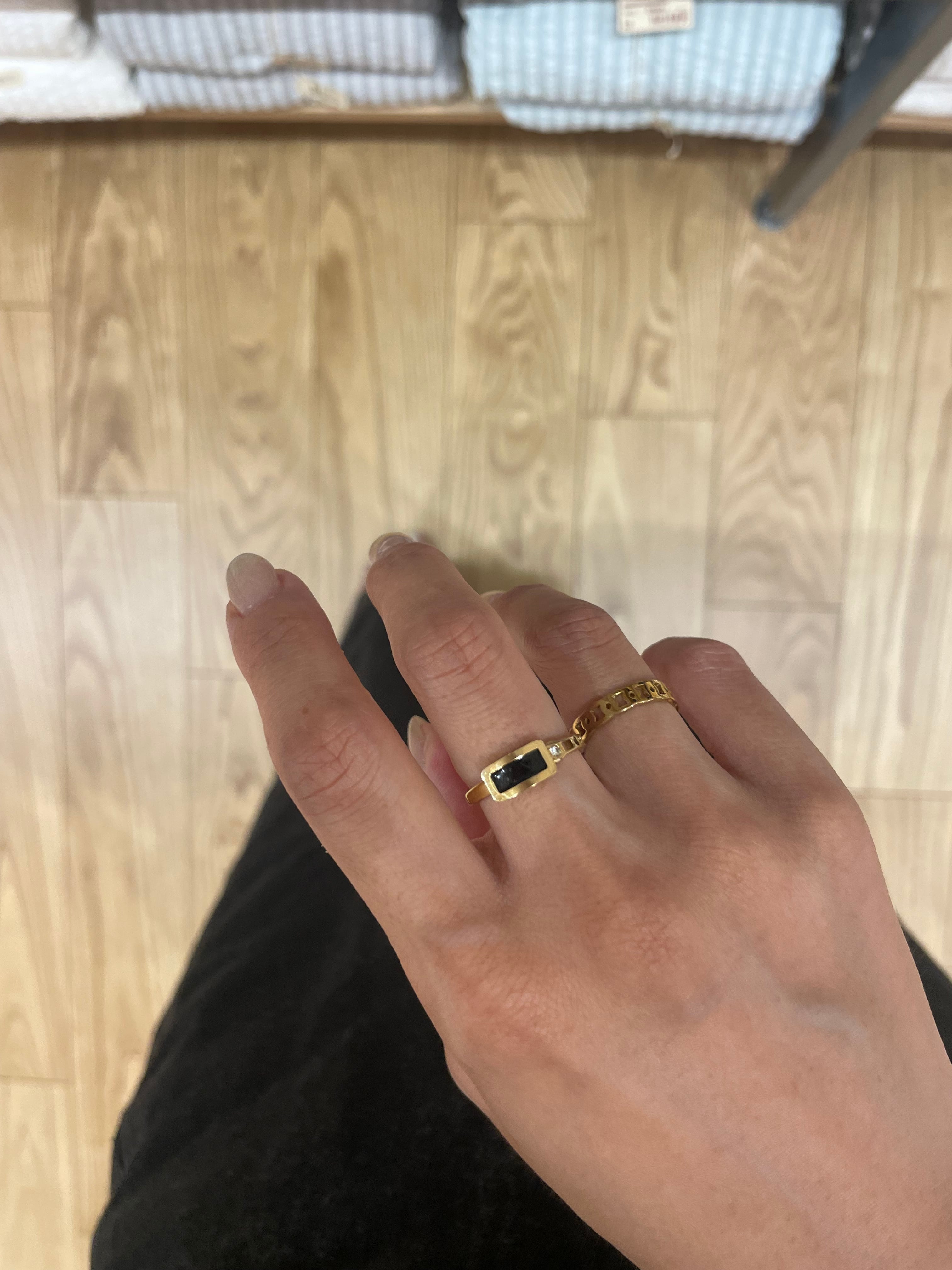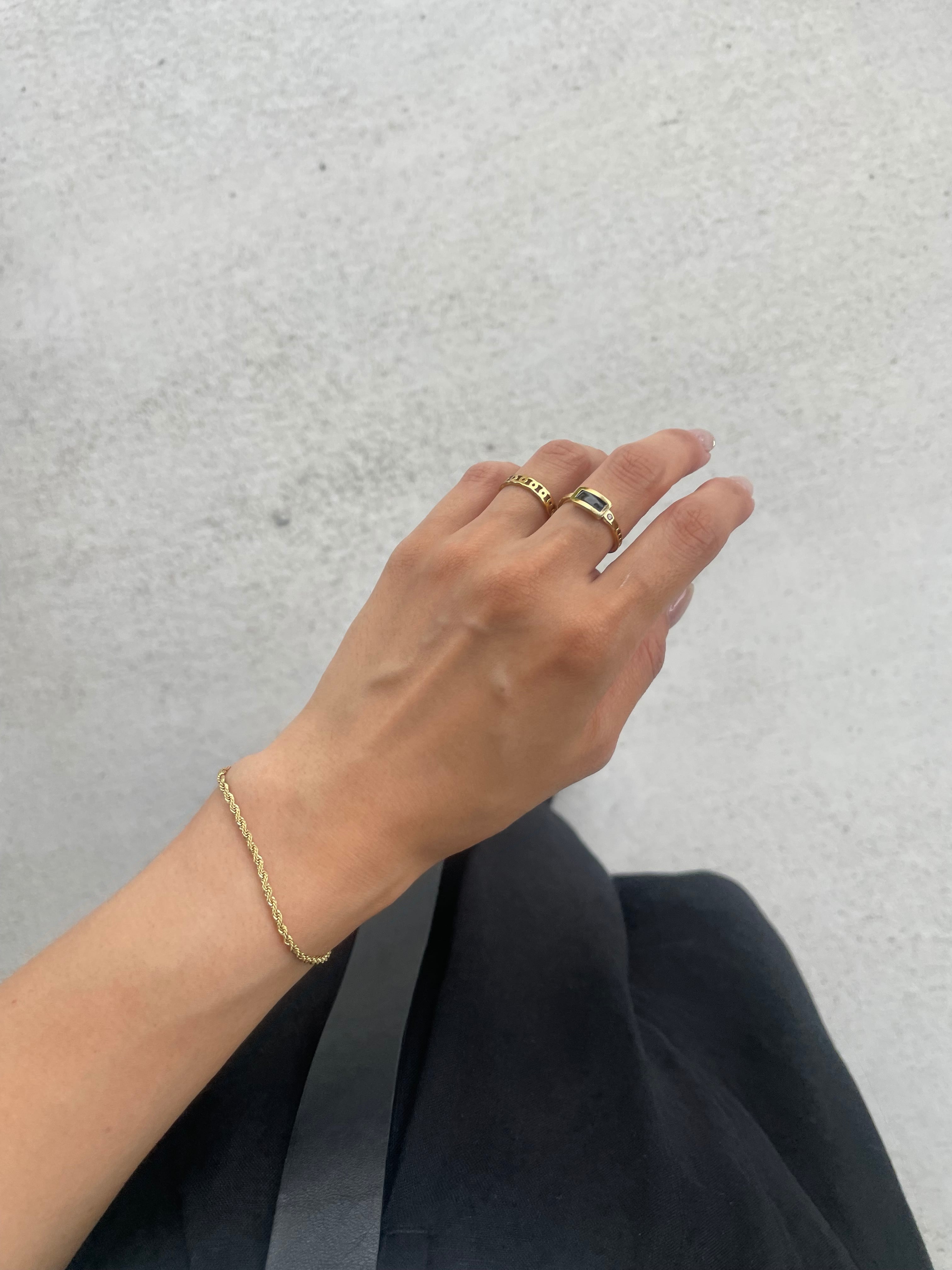 極具存在感的黑石配上鏤空造型金環~