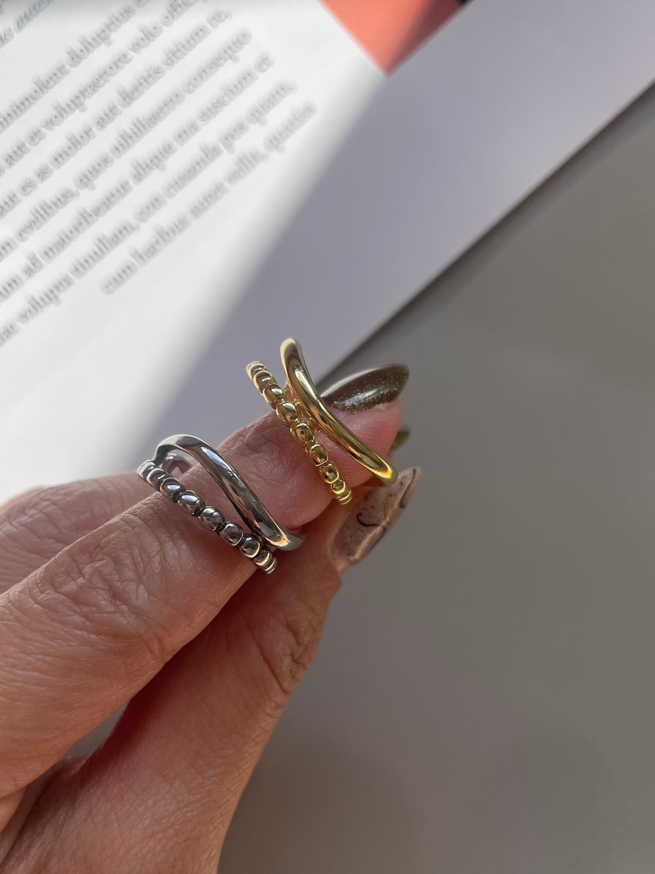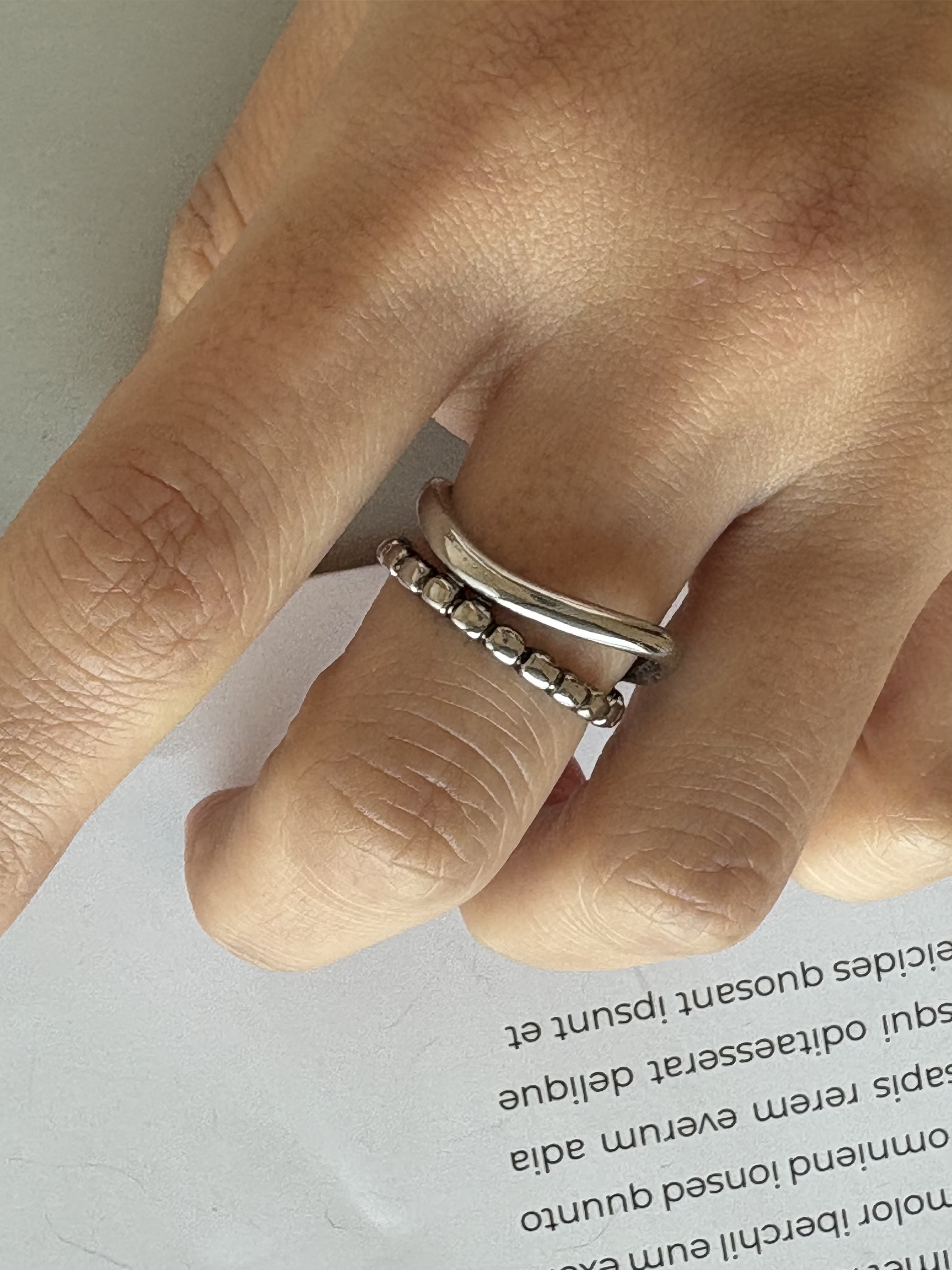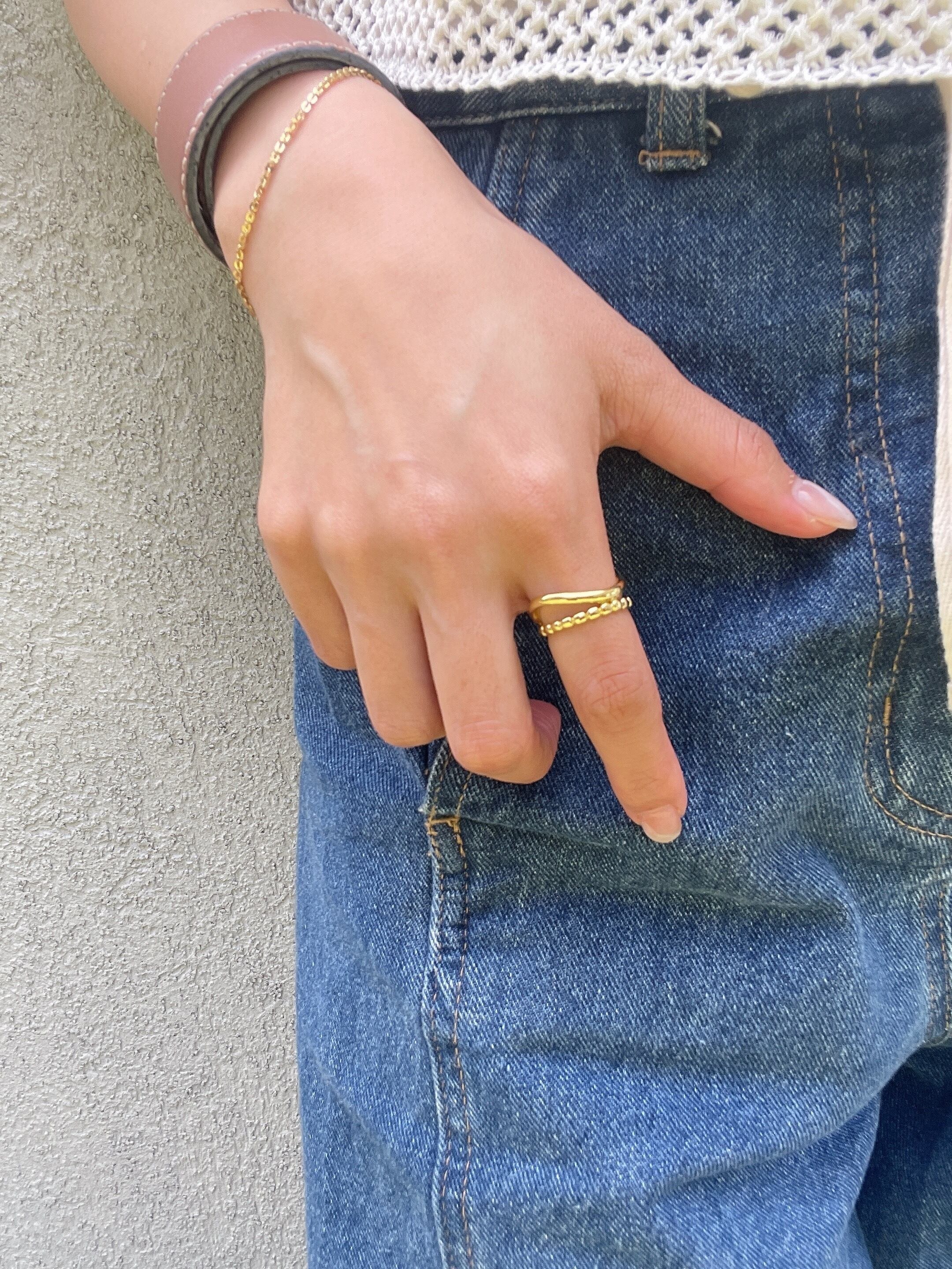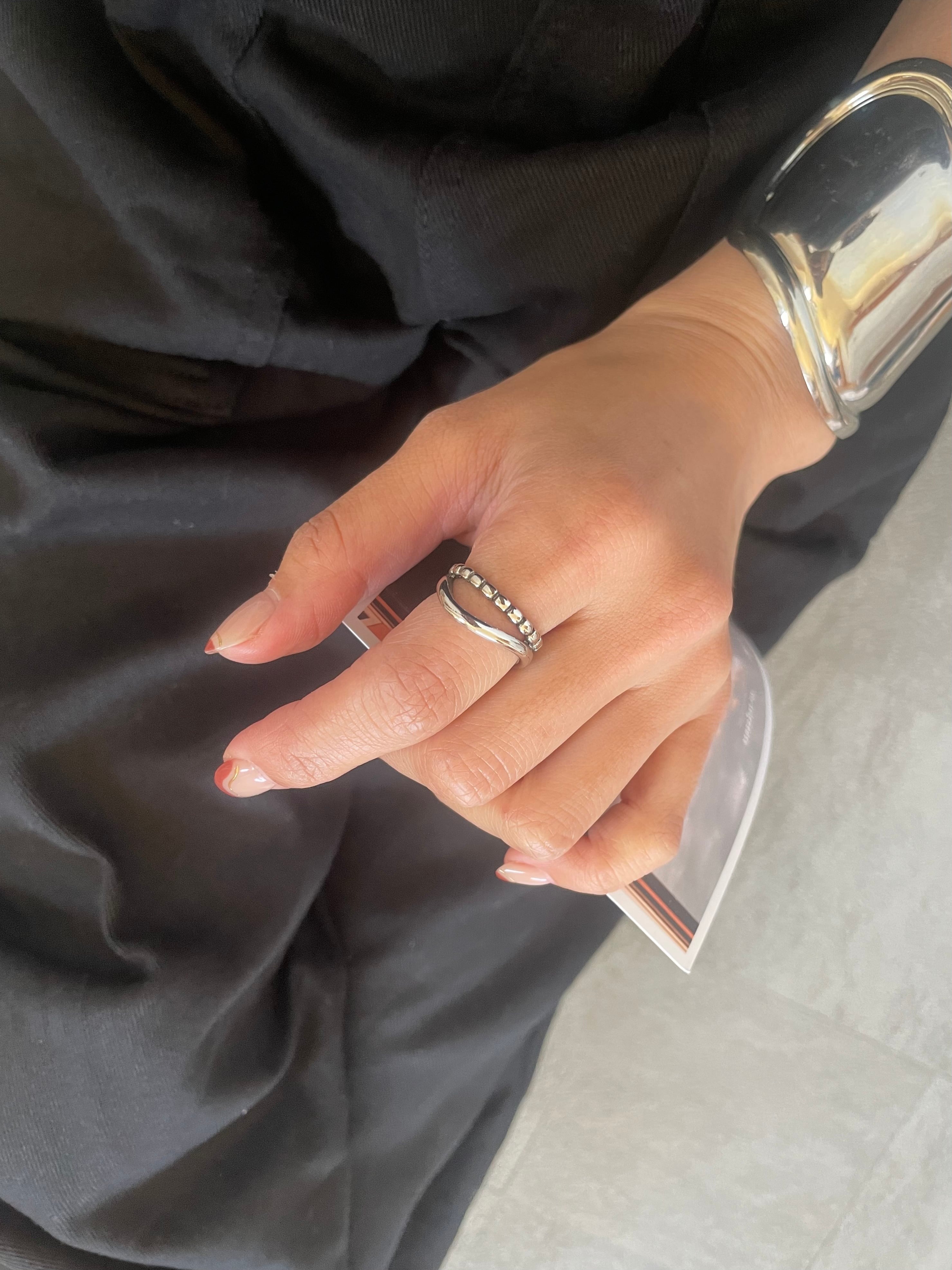 細緻曲線配上小圓點的造型開口戒!