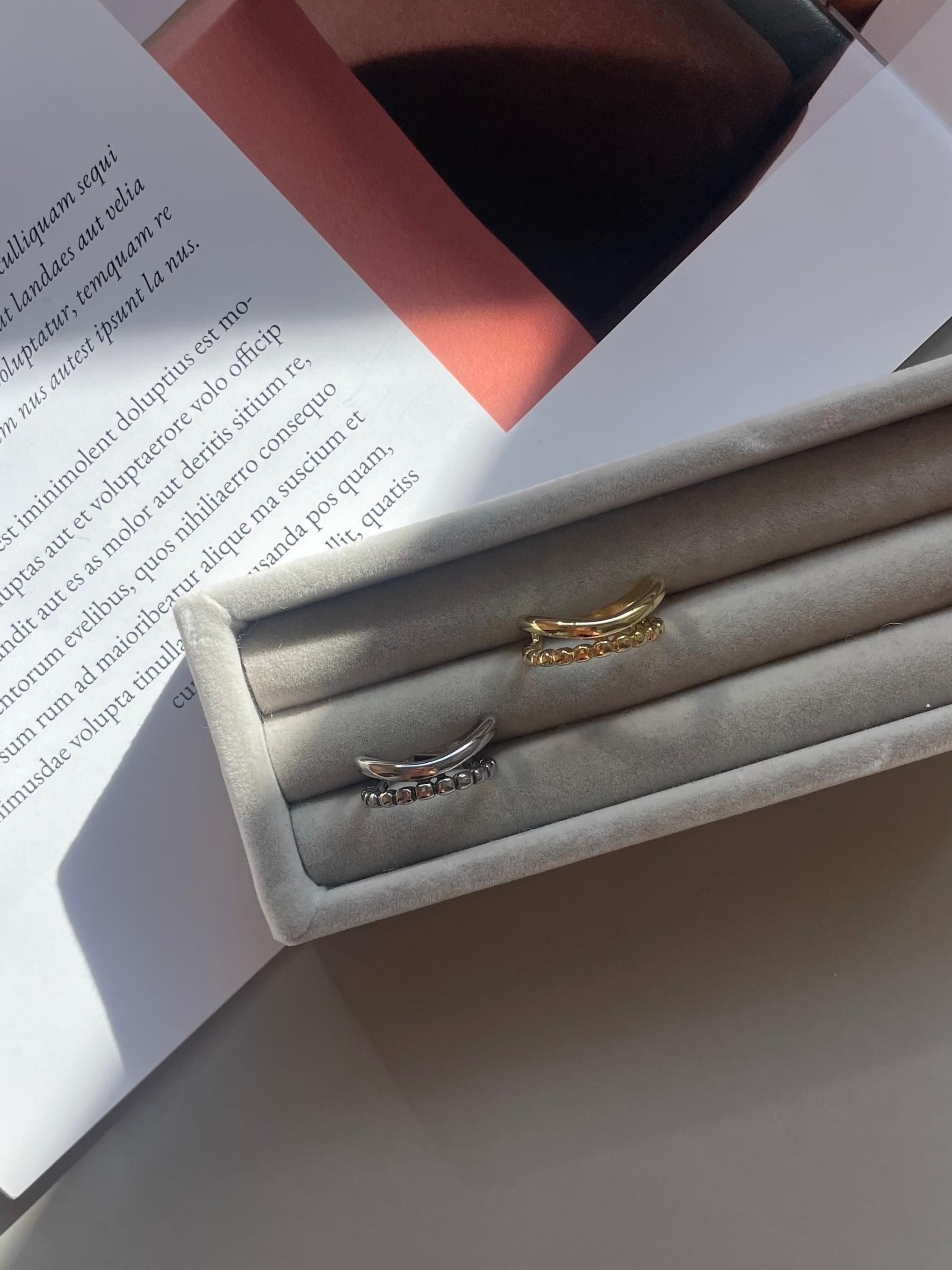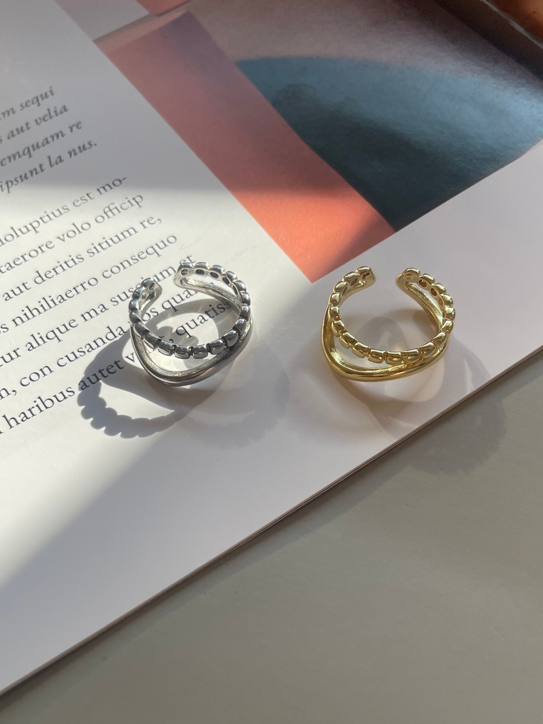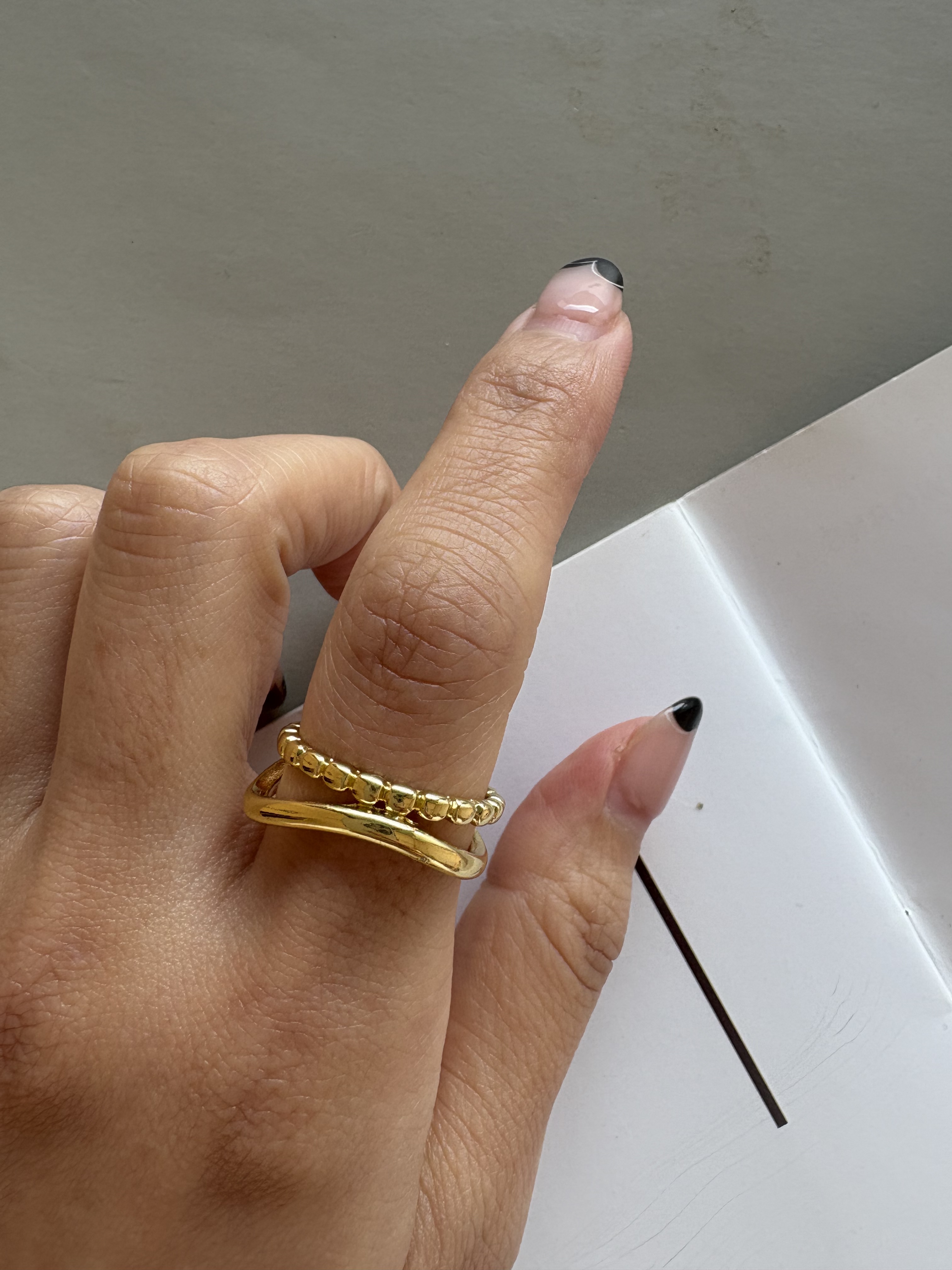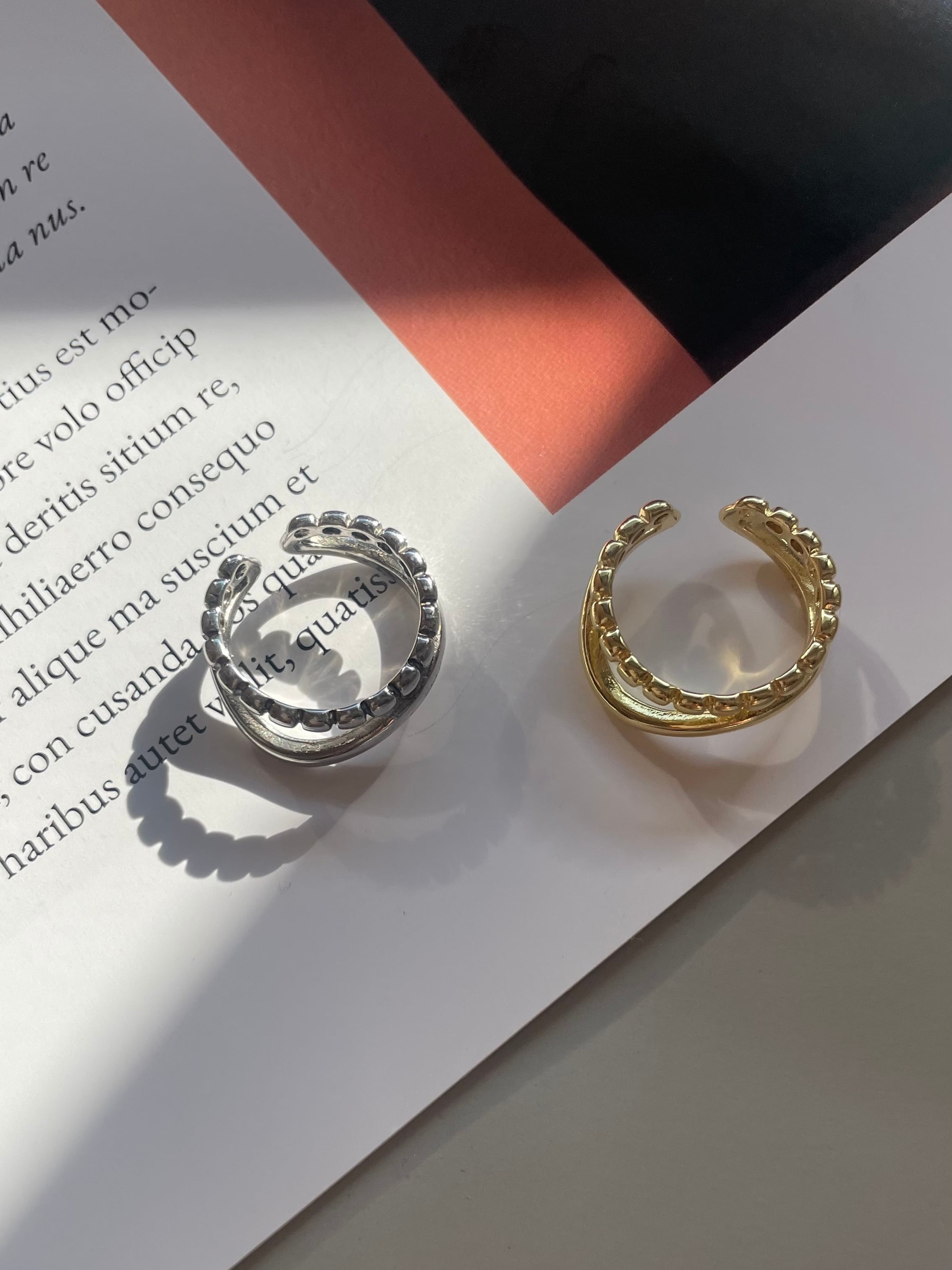 細緻曲線配上小圓點的造型開口戒!