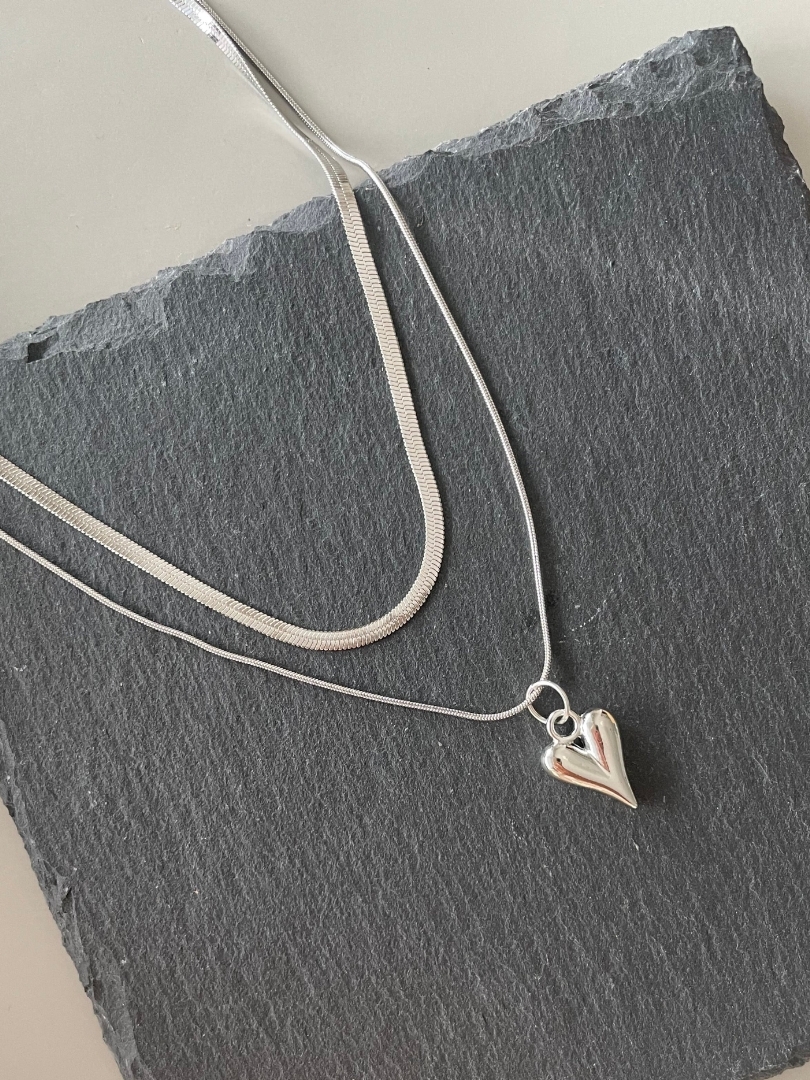double chain heart pendant necklace