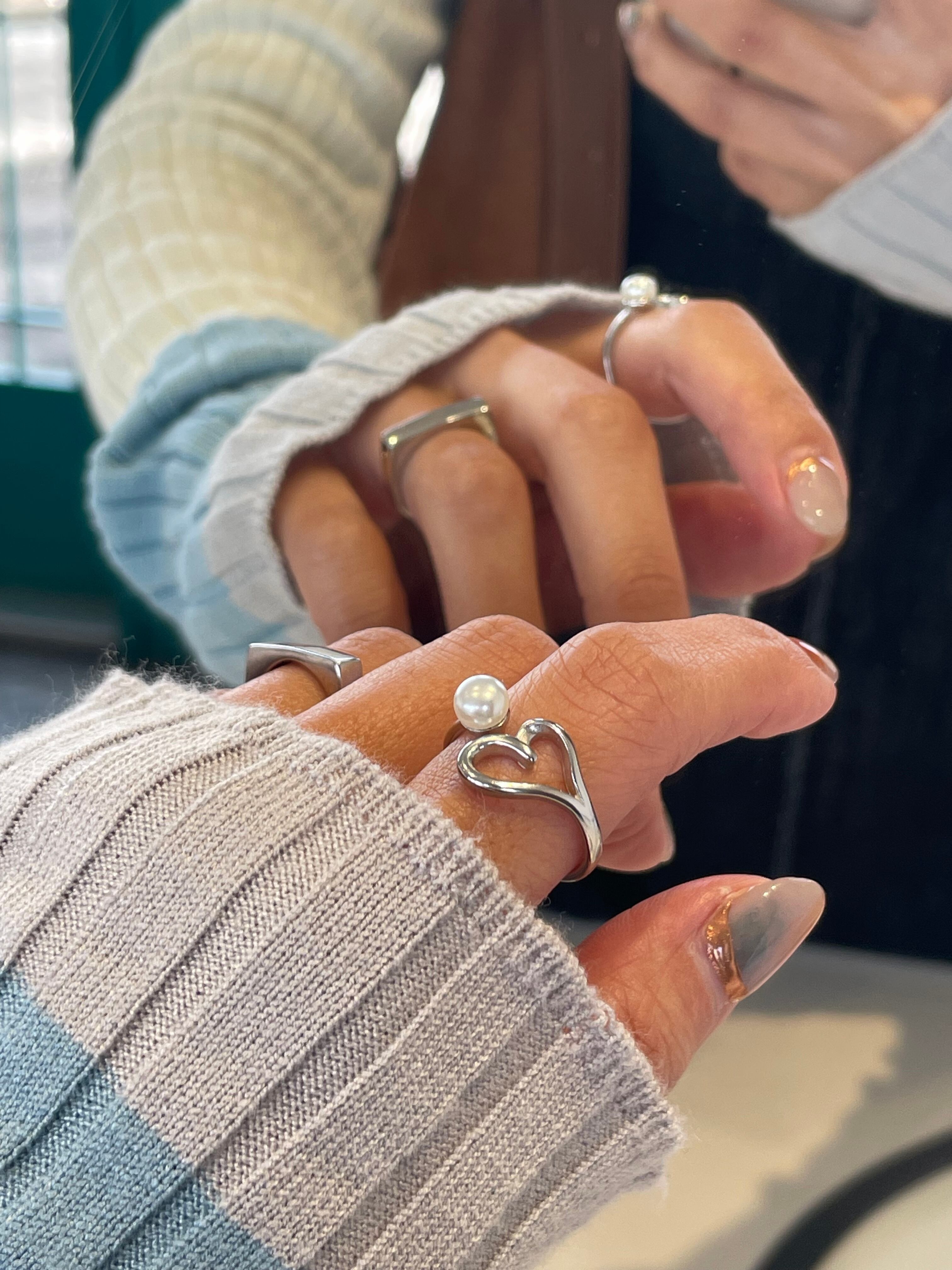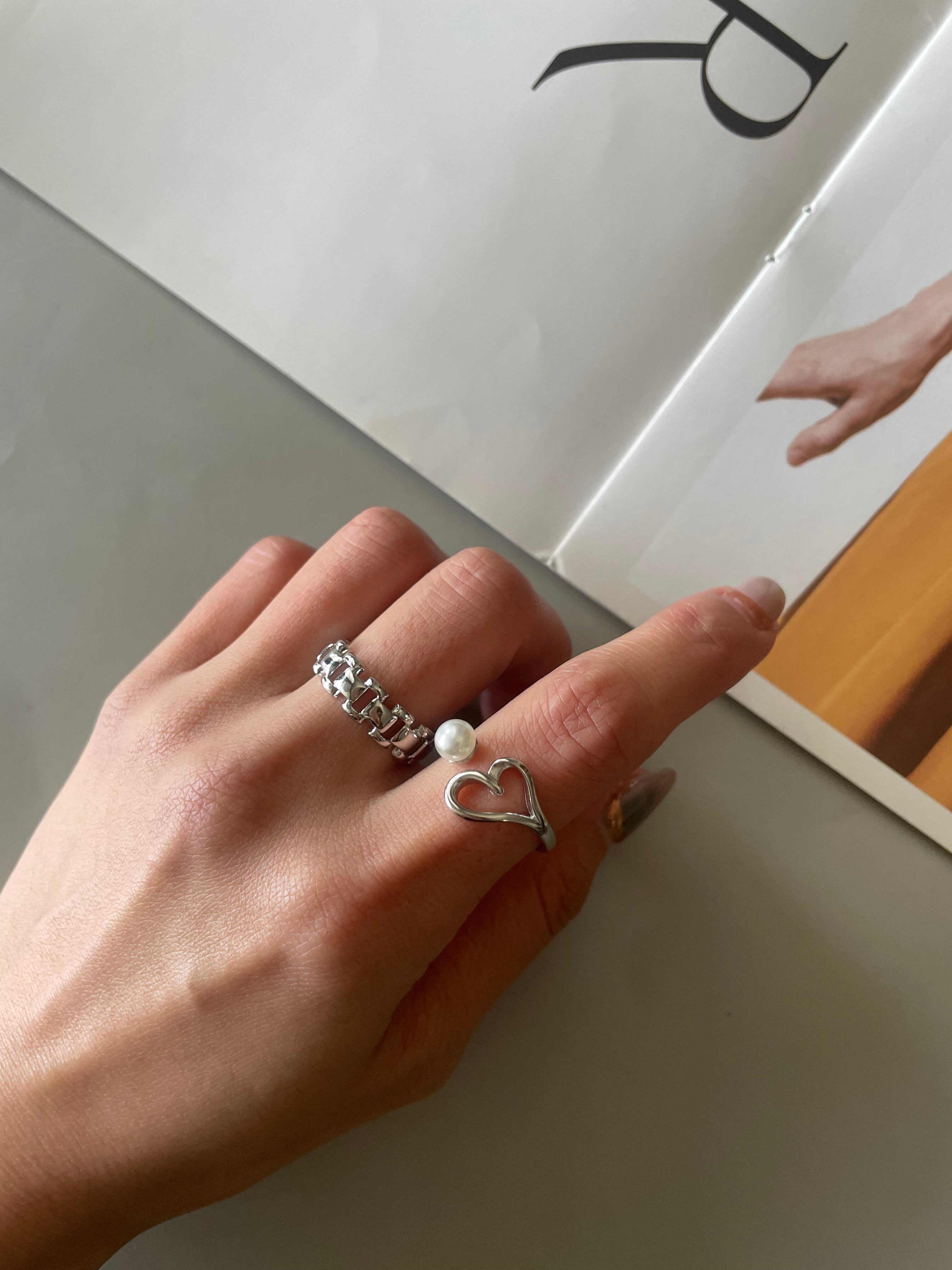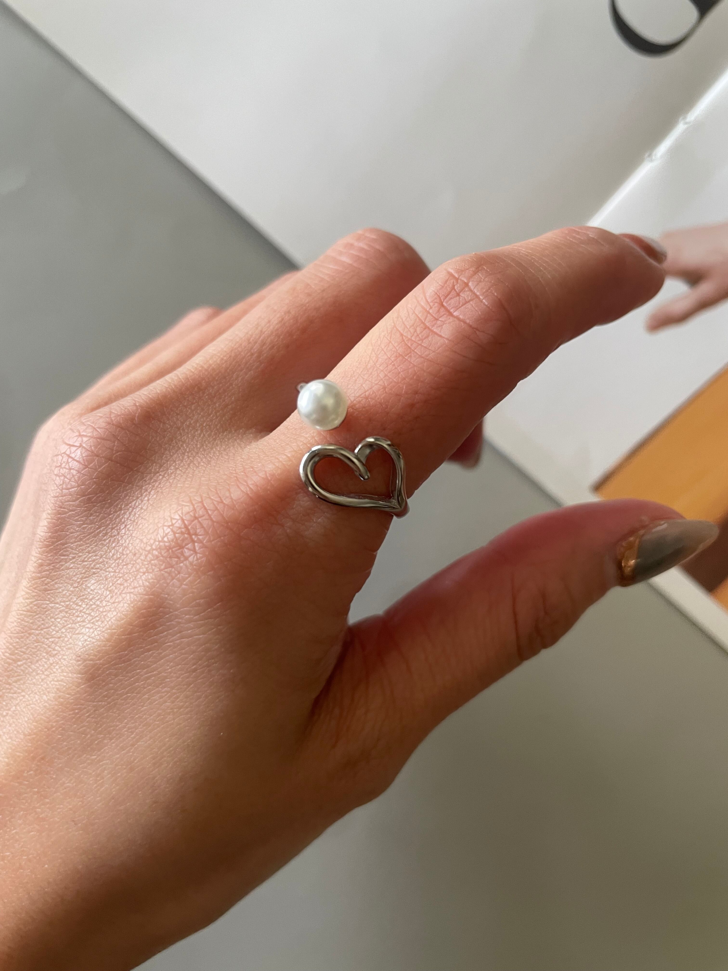 高雅珍珠x鏤空愛心的開口戒•.❥