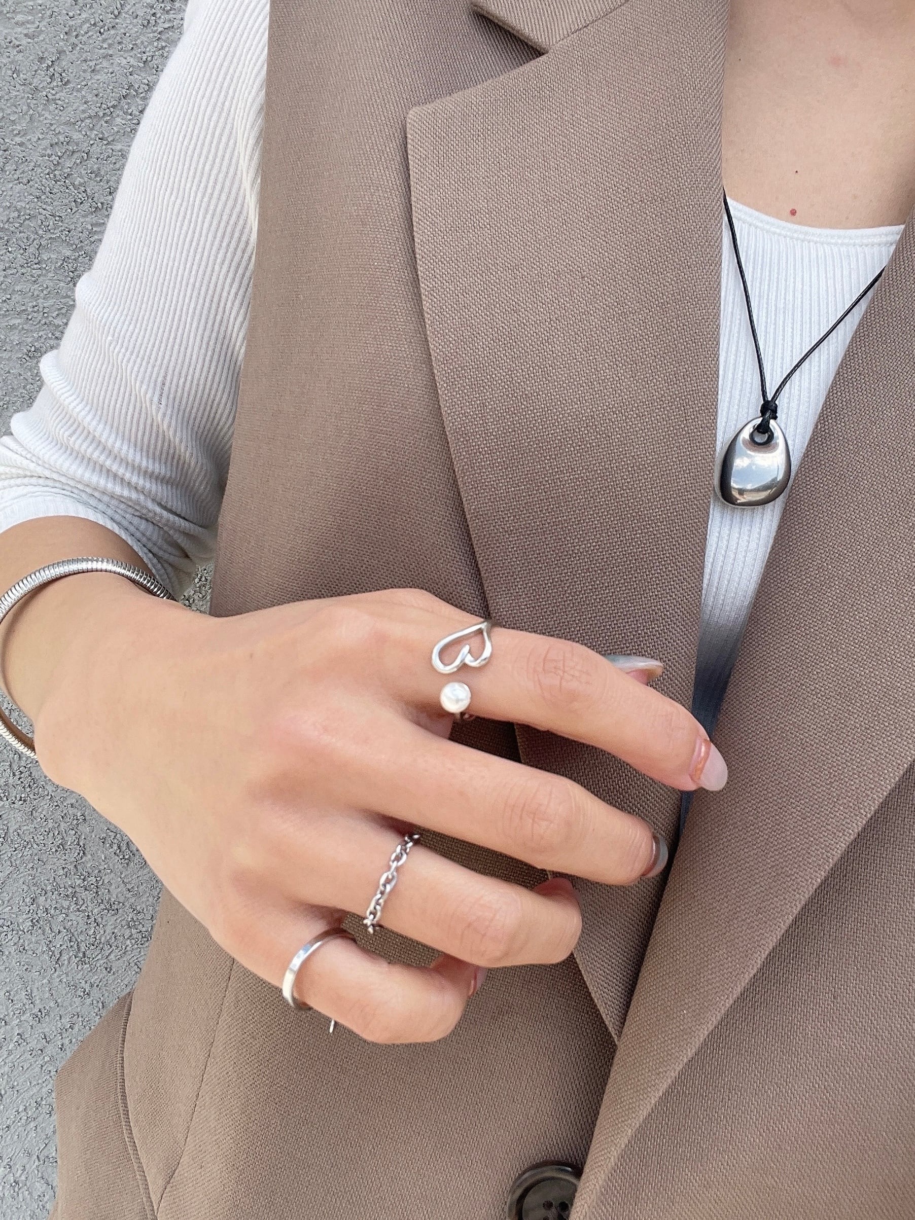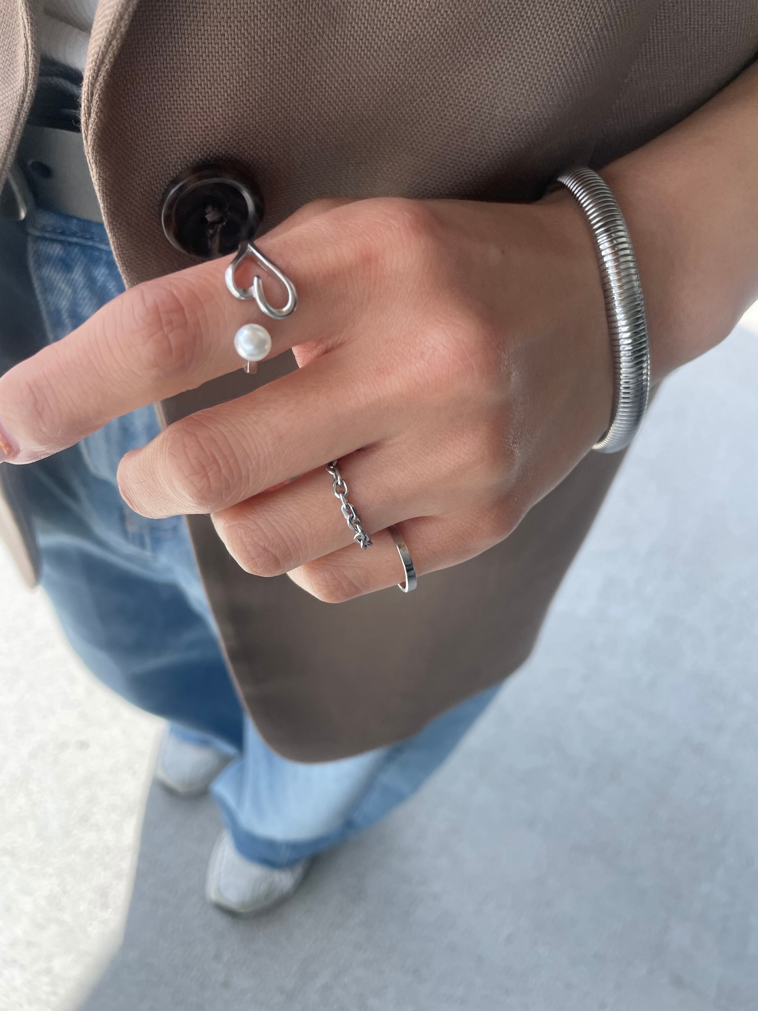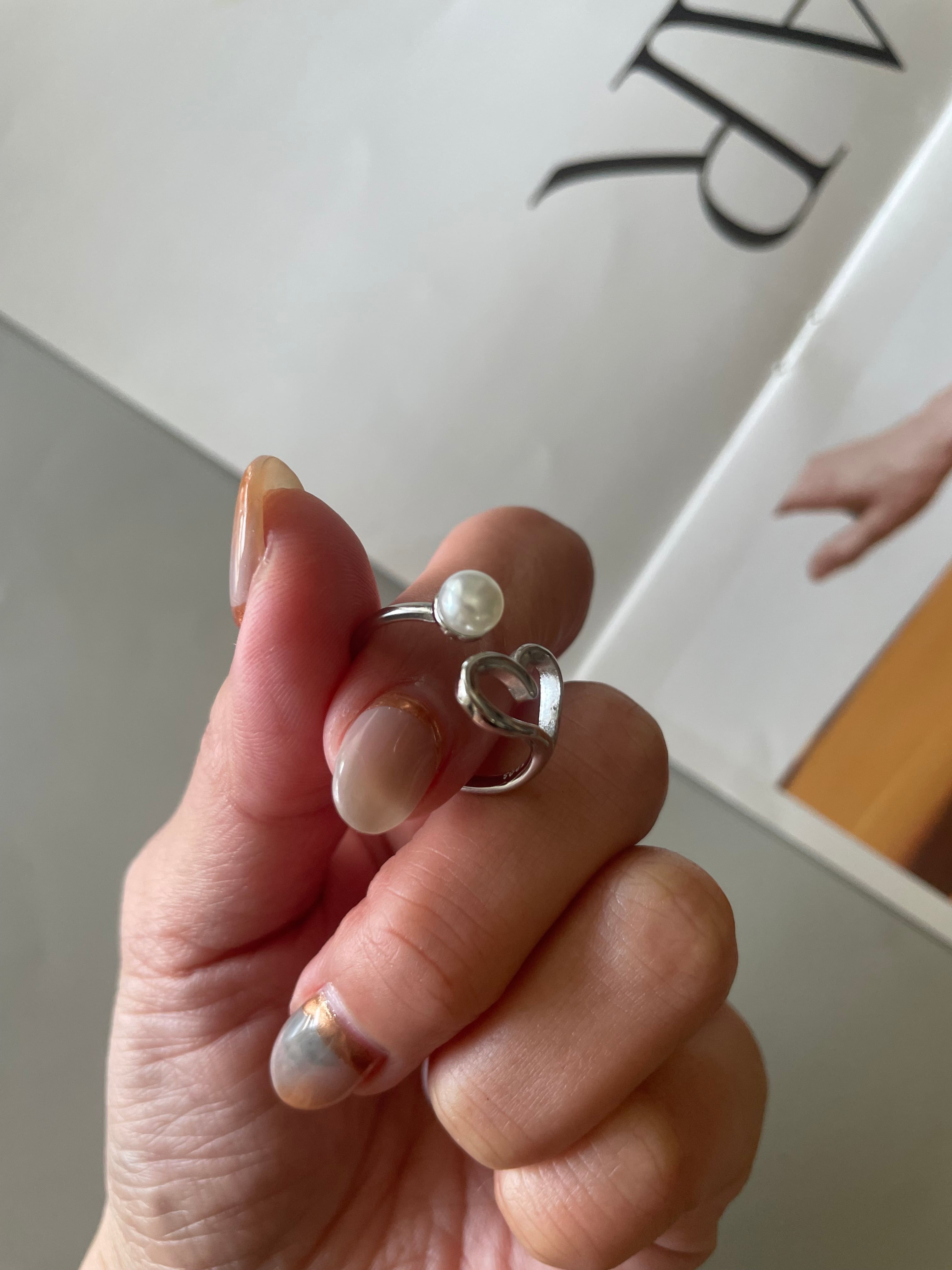 高雅珍珠x鏤空愛心的開口戒•.❥