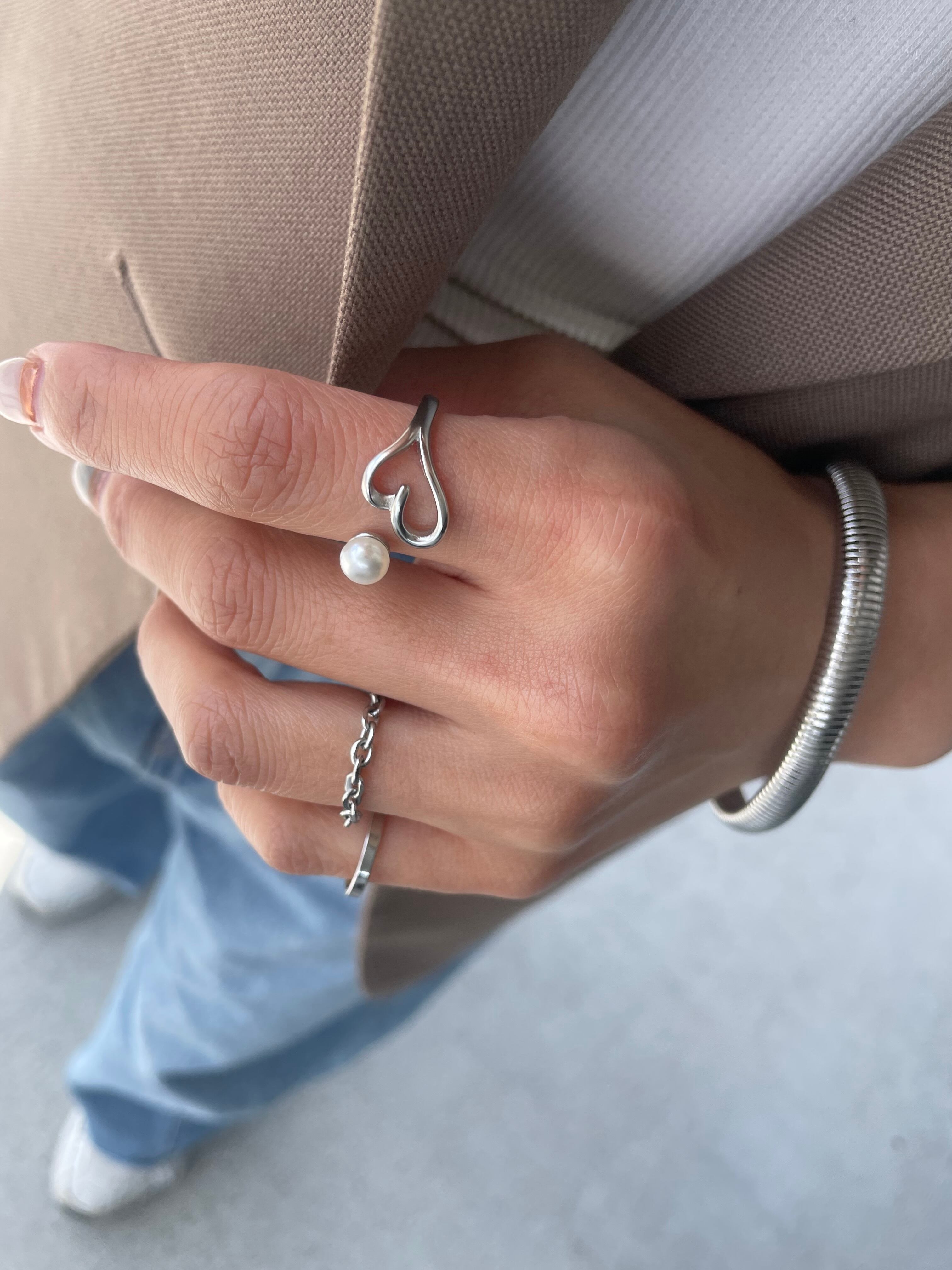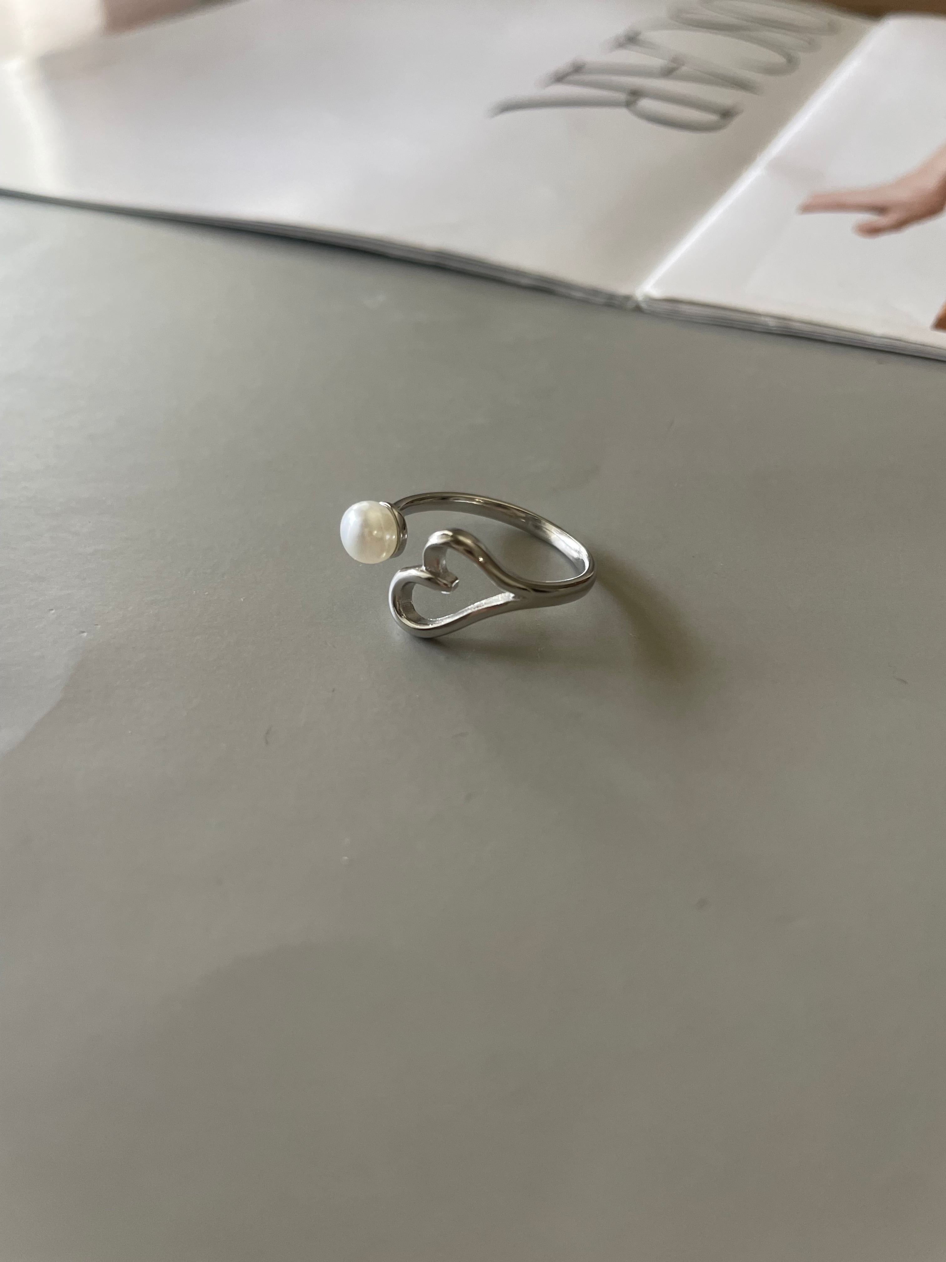 heart pearl open ring