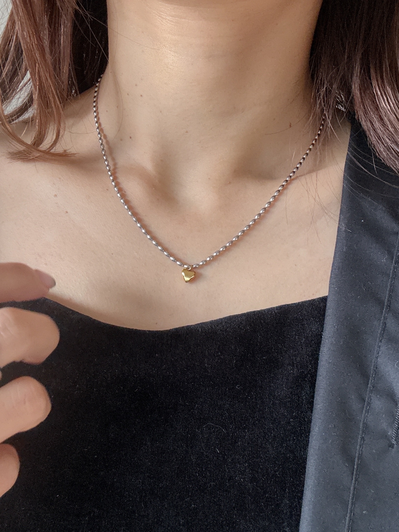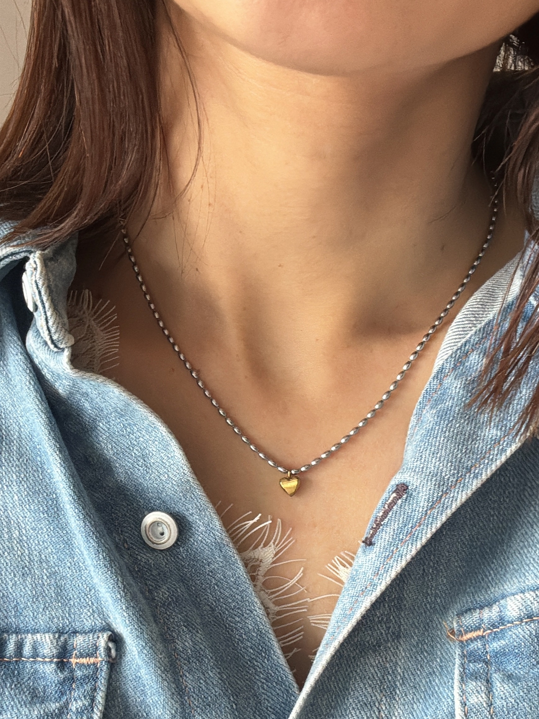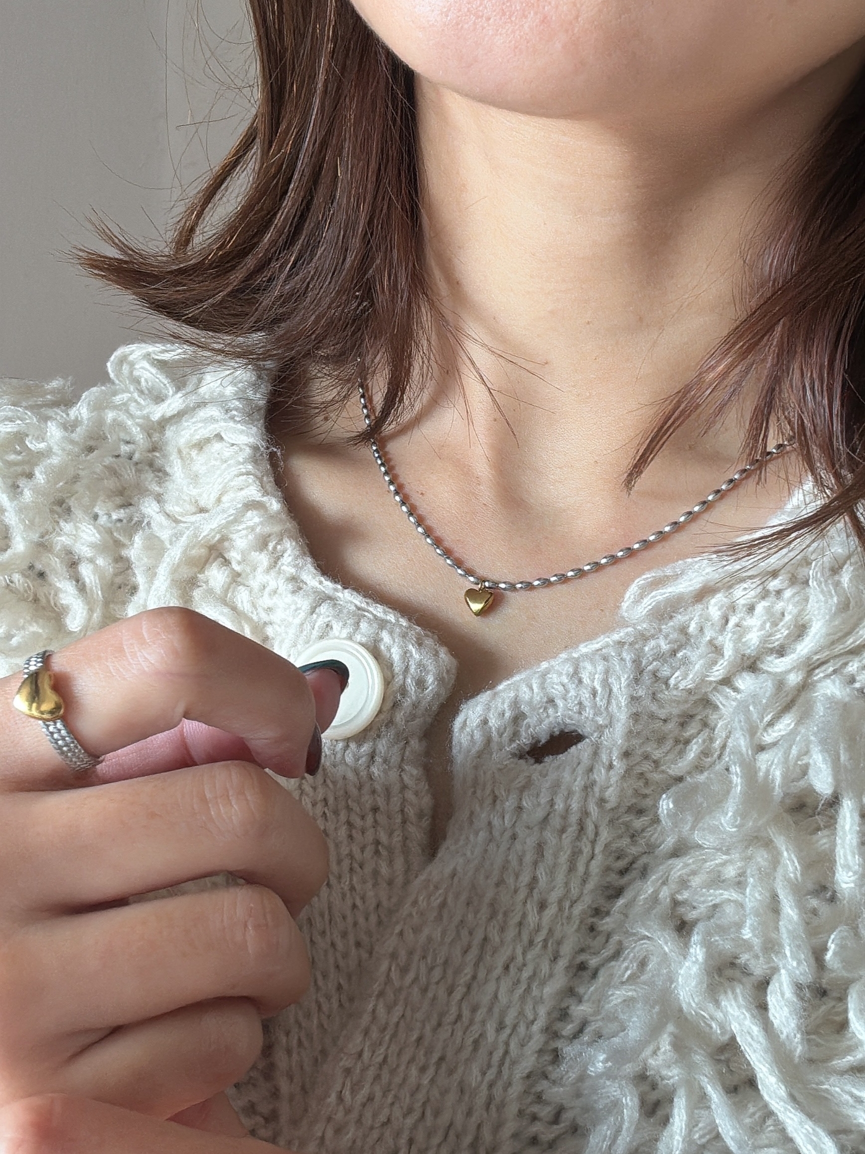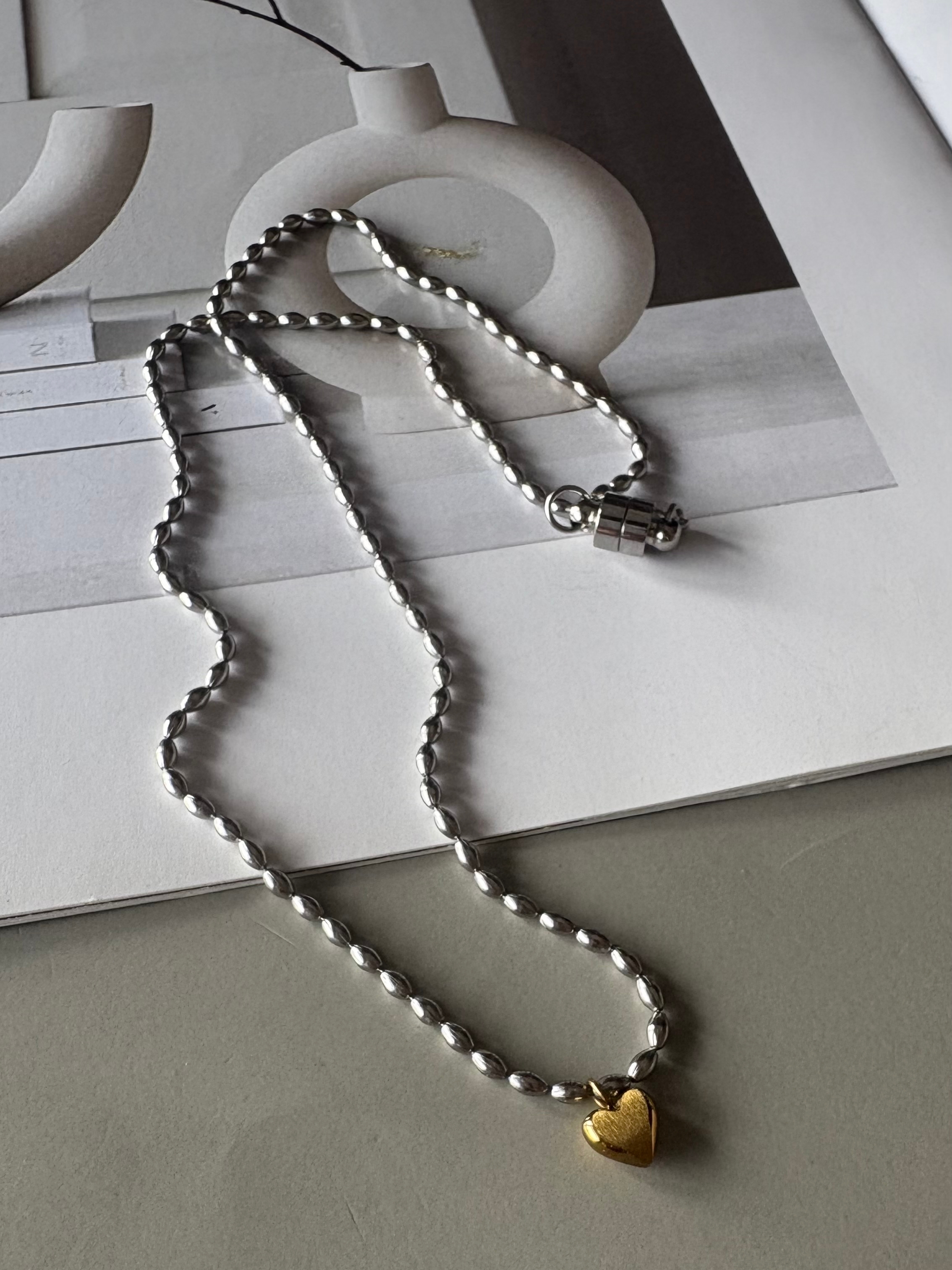 可愛的金心墜飾搭配人氣的豆豆銀鏈⋆。