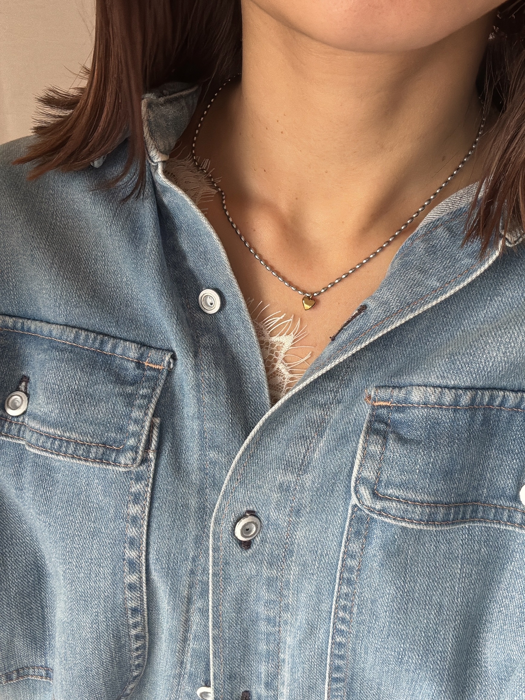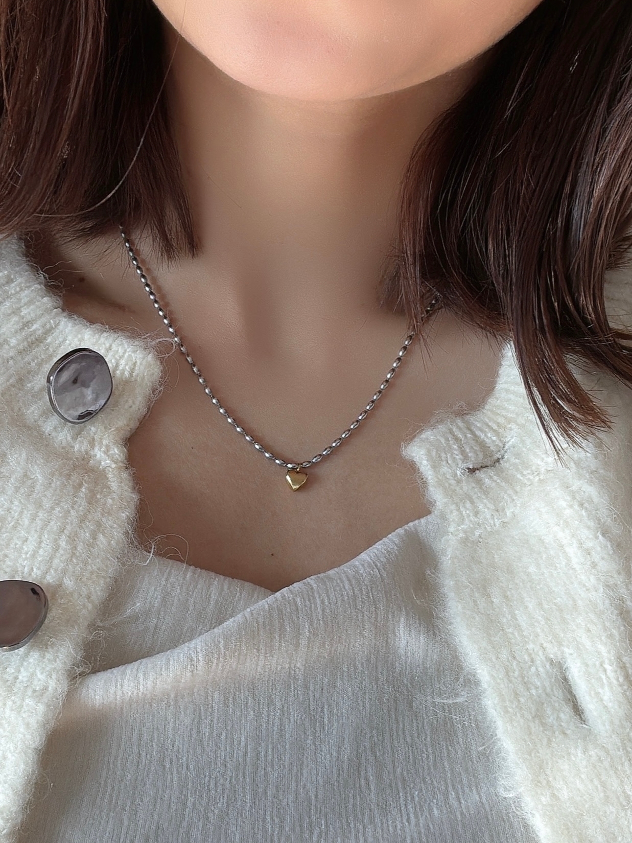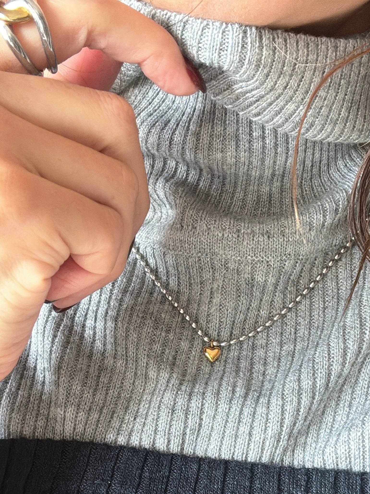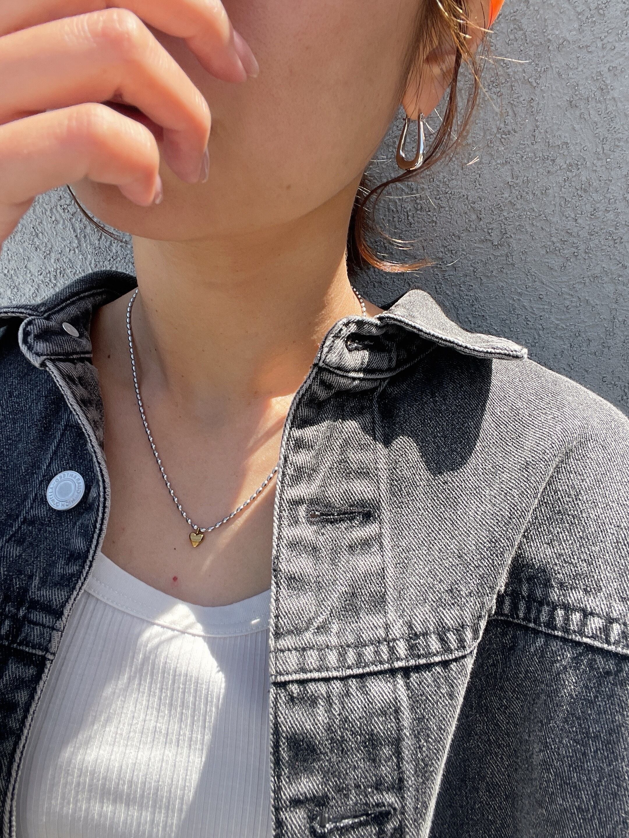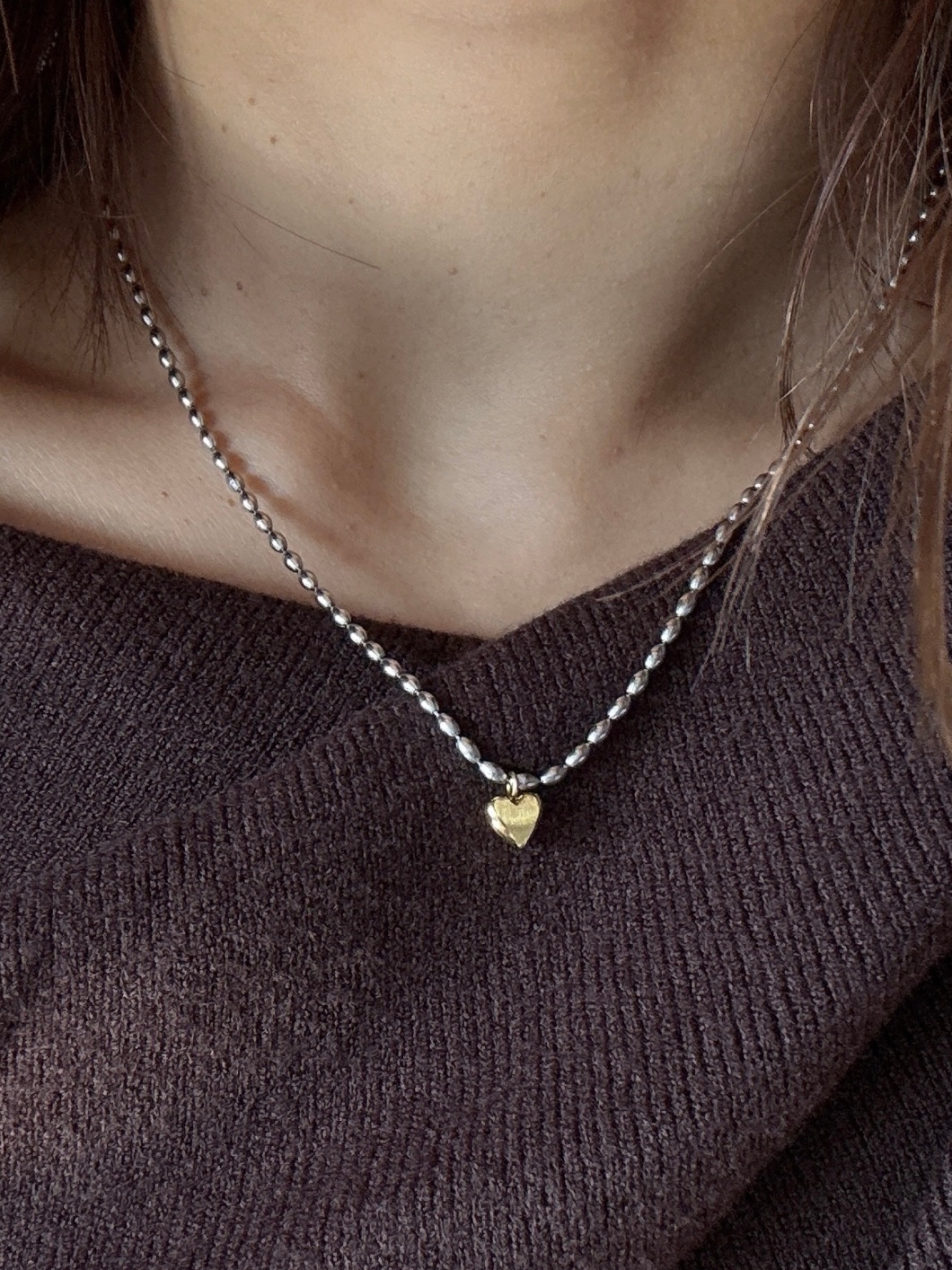 可愛的金心墜飾搭配人氣的豆豆銀鏈⋆。