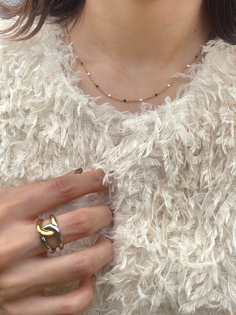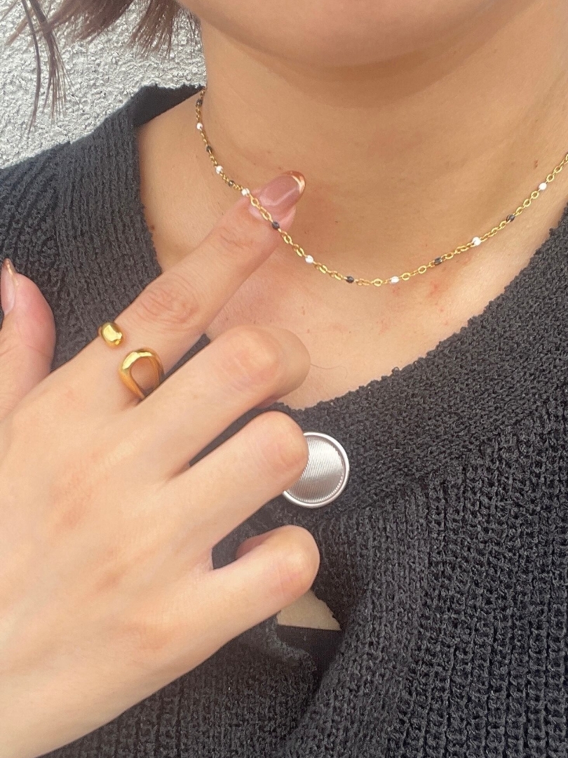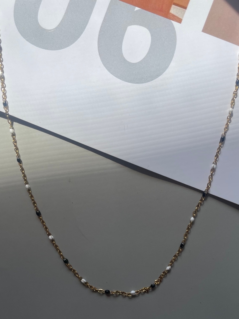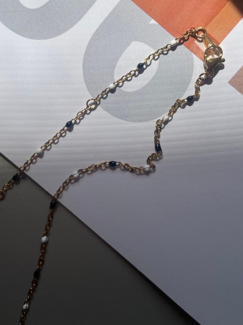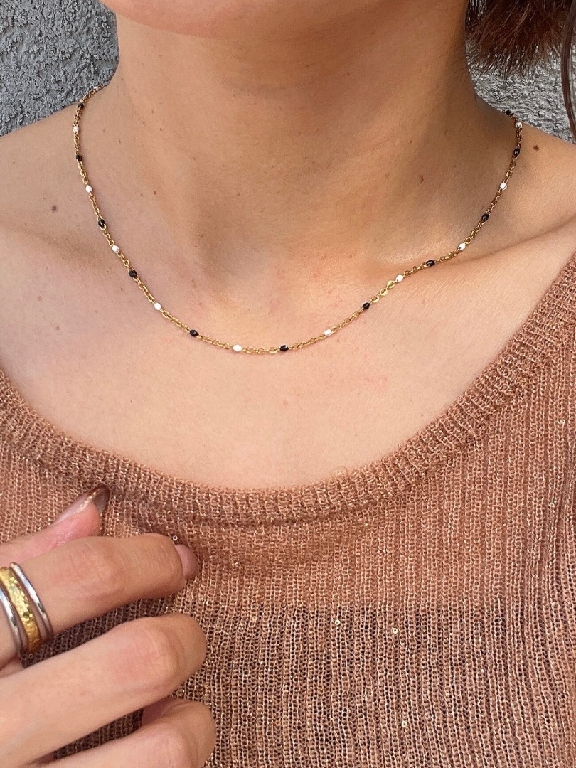 monochrome beads gold necklace