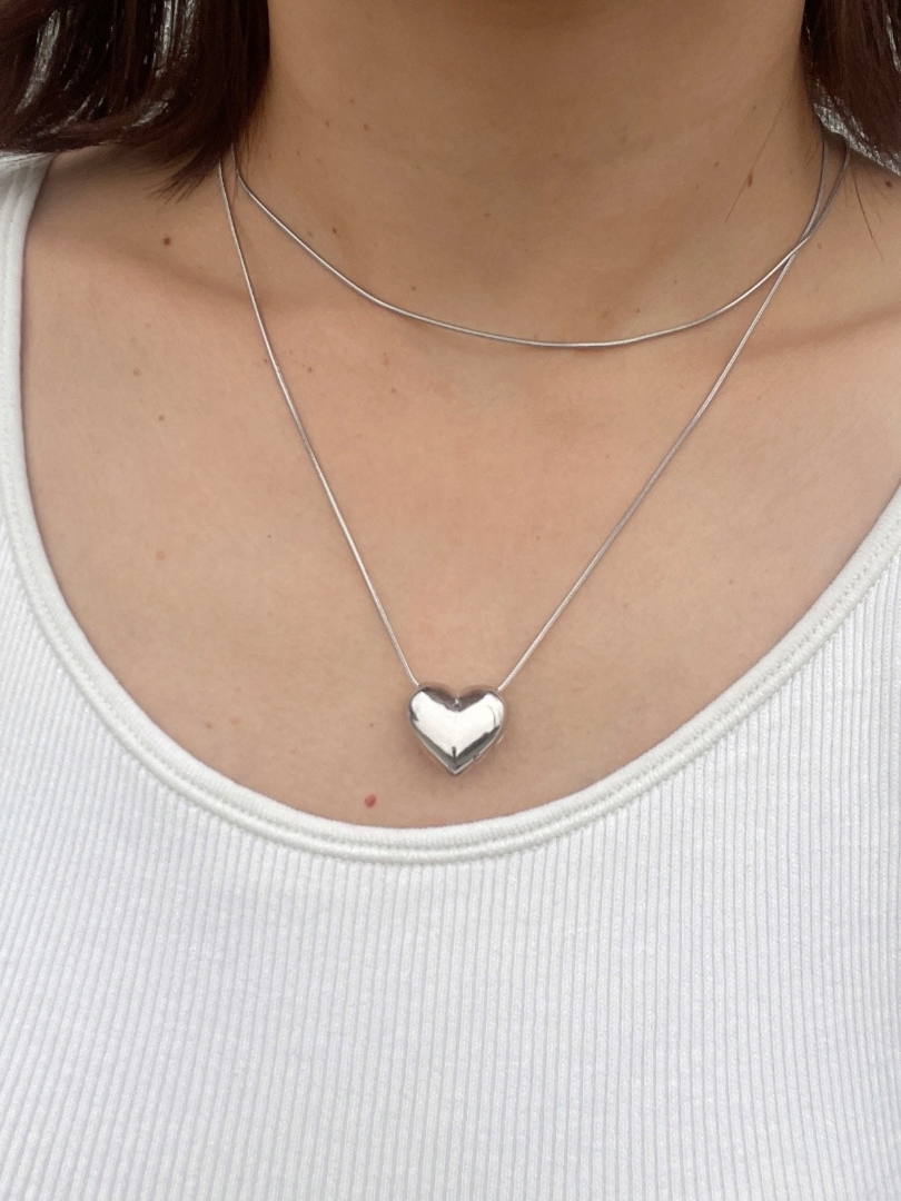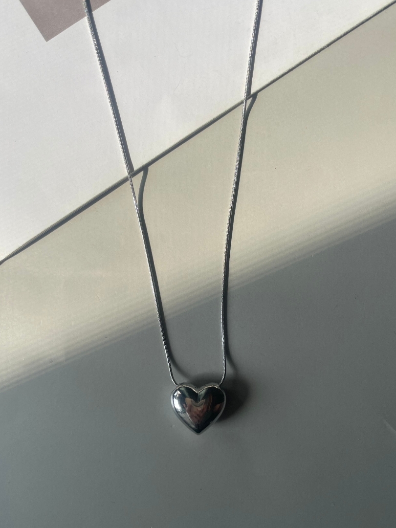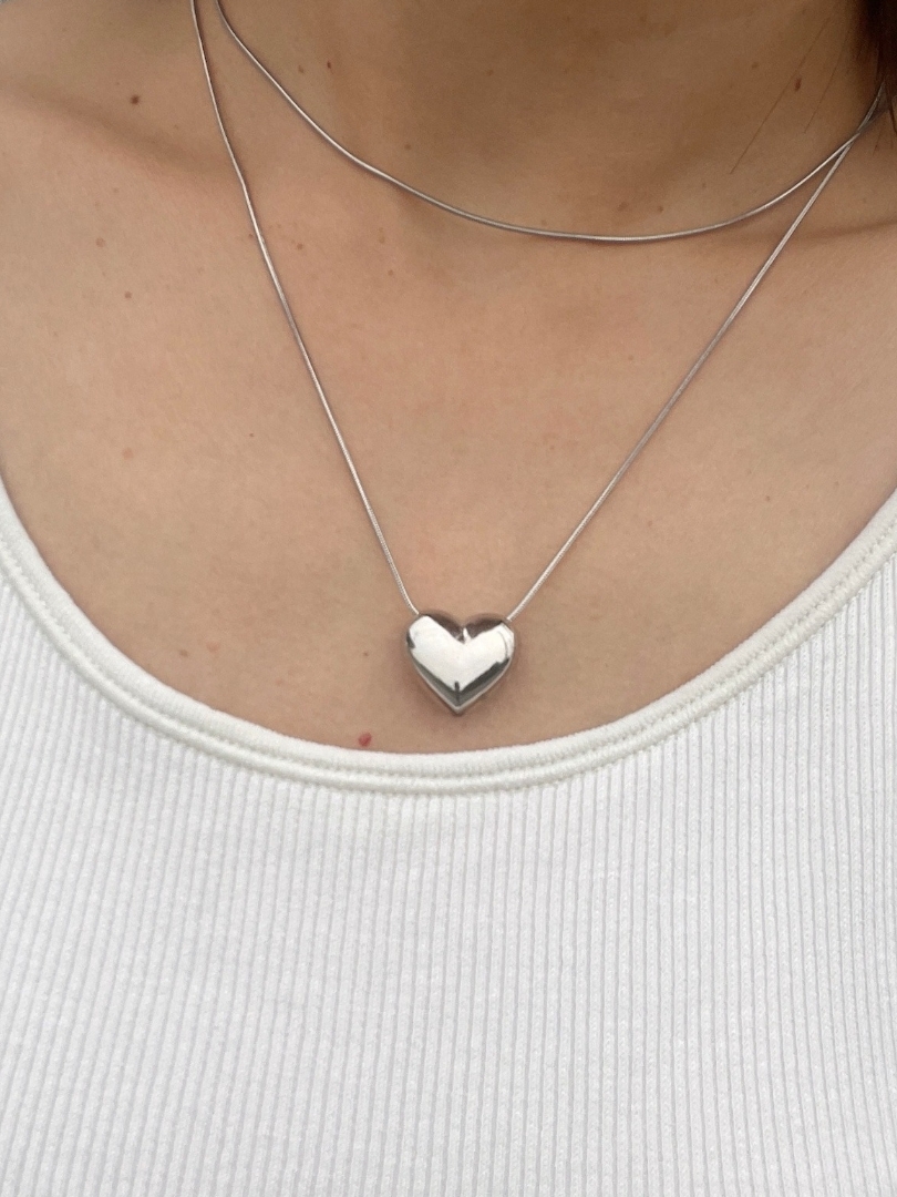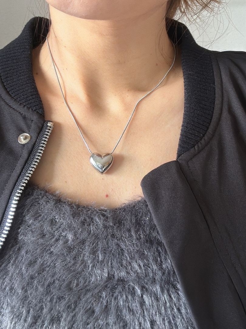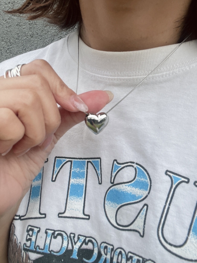 圓潤飽滿的時尚立體銀心項鍊❤︎