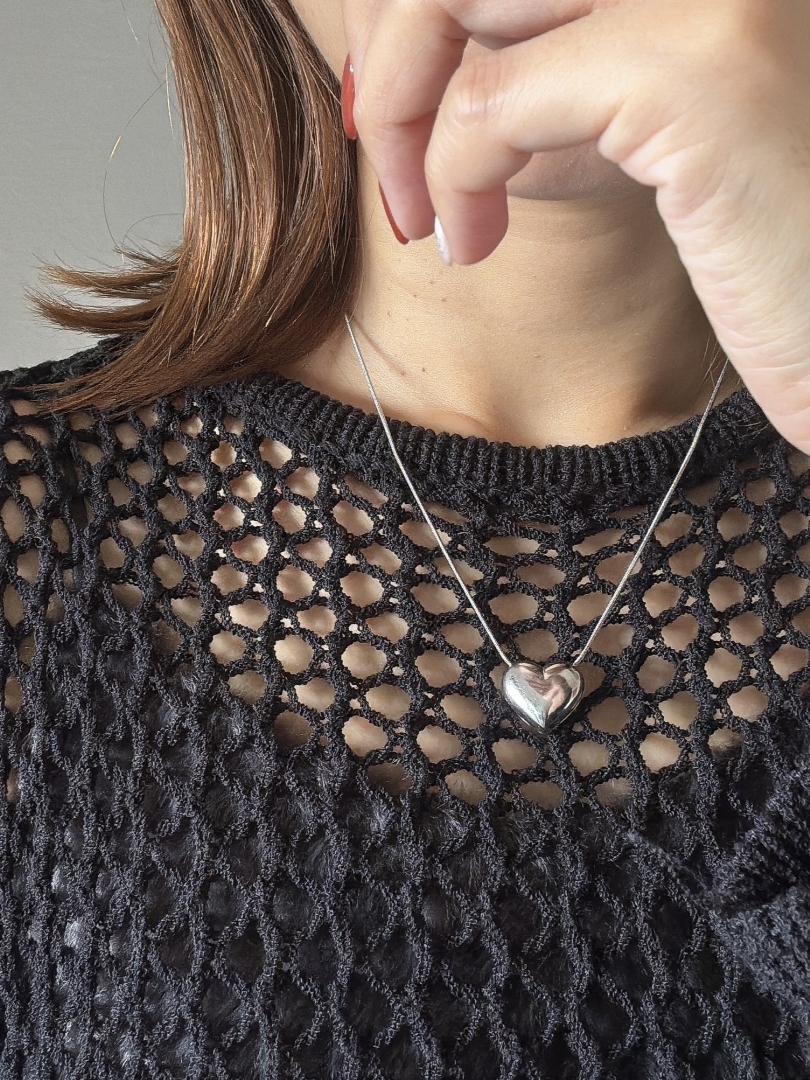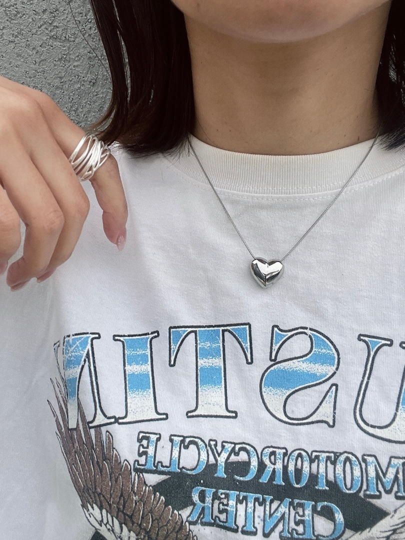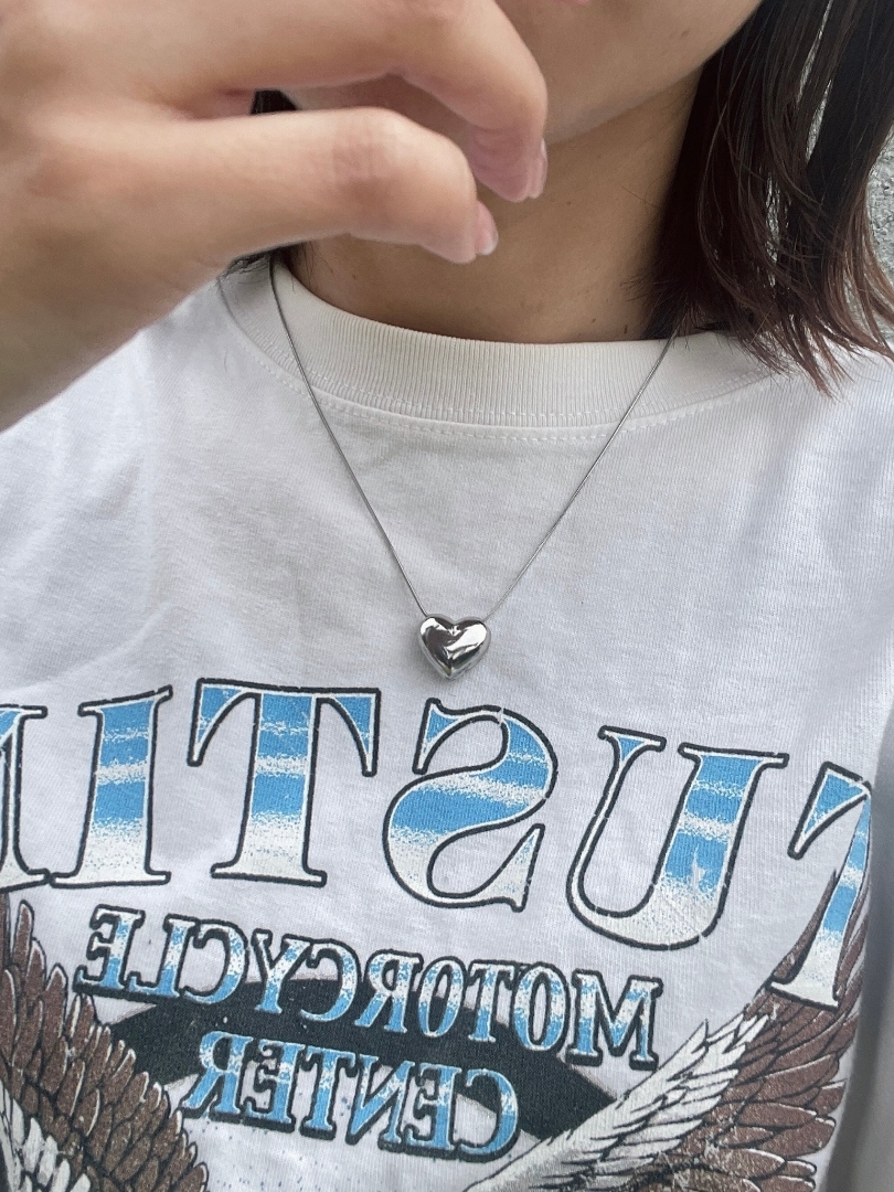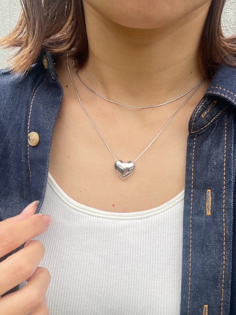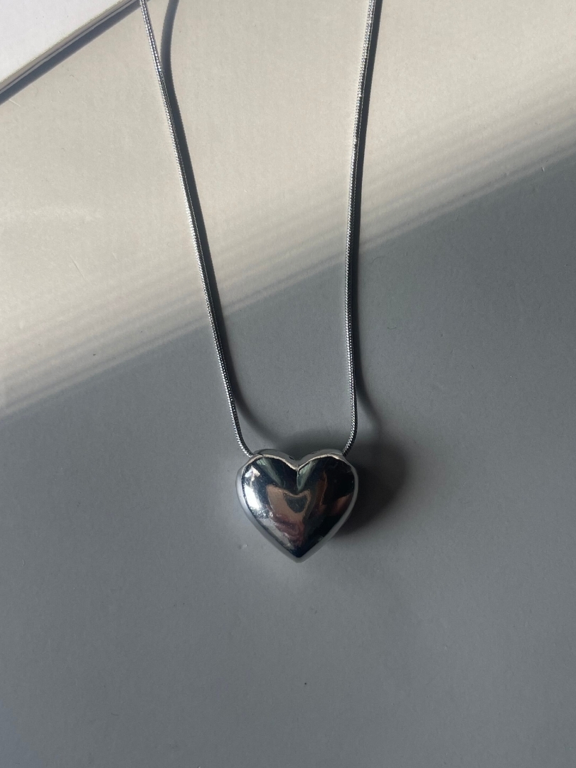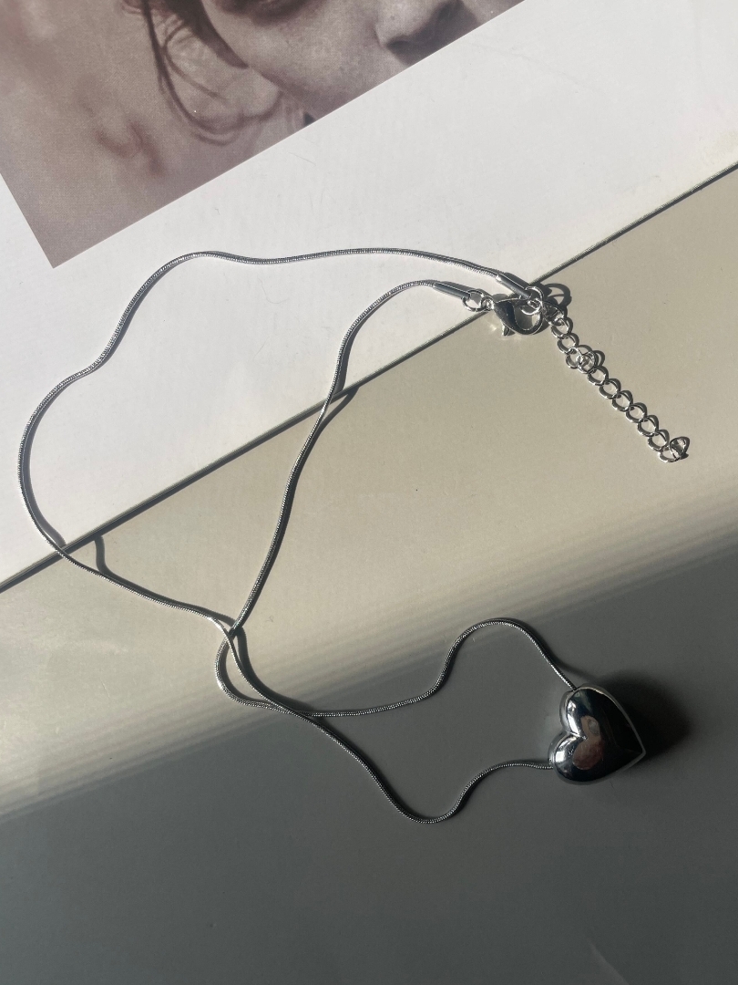 圓潤飽滿的時尚立體銀心項鍊❤︎